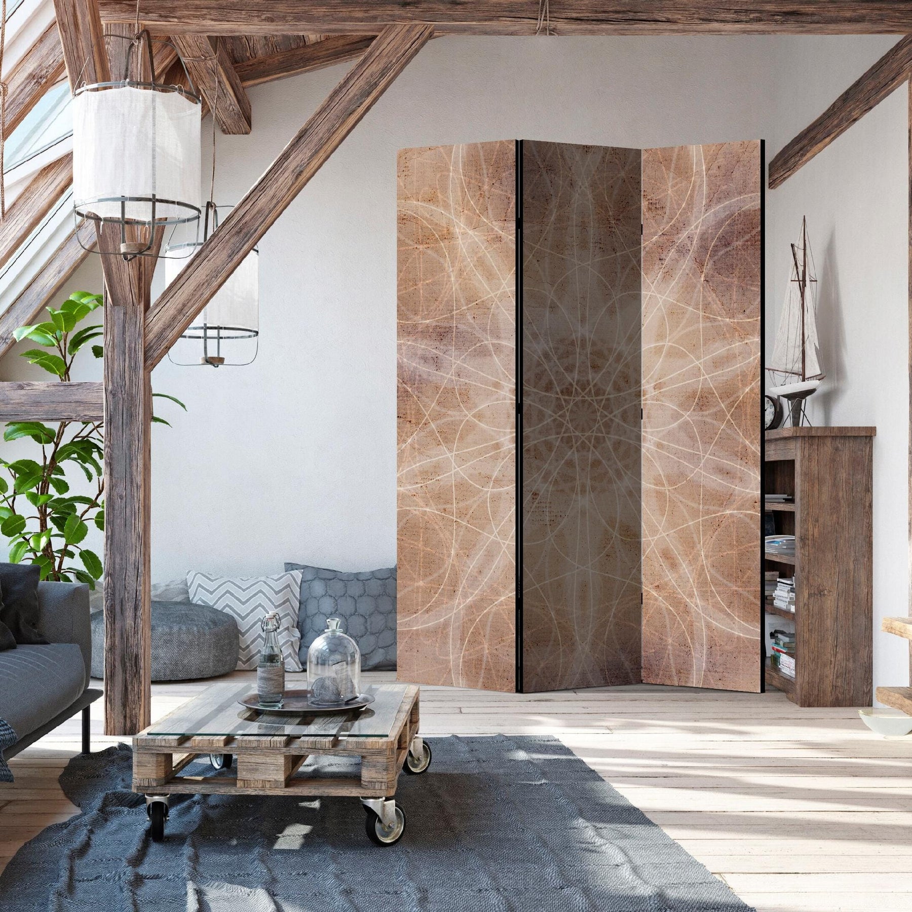 Daudzfunkcionāls risinājums, kas ļauj efektīvi sadalīt telpu, neuzstādot starpsienas. Augstākās kvalitātes divpusēja apdruka un elegants izskats papildina funkcionalitāti ar dekoratīvu akcentu.