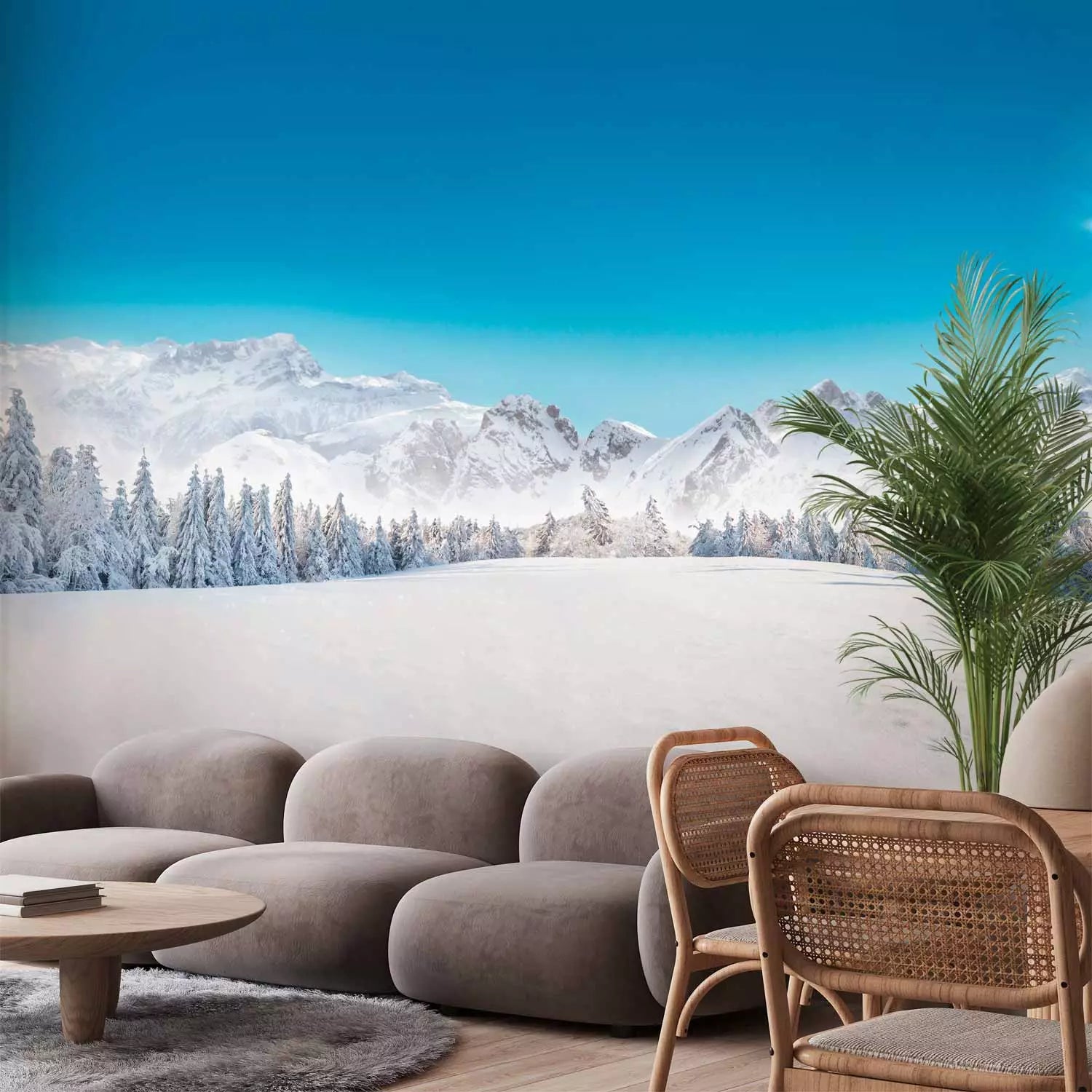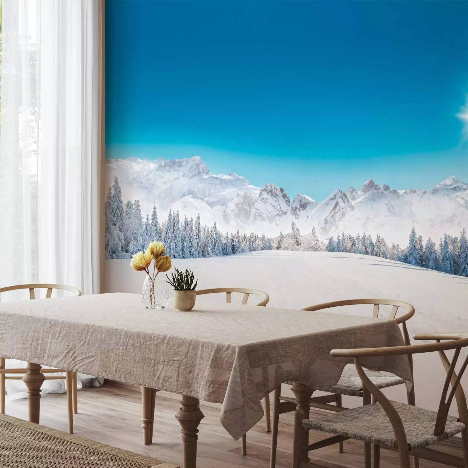 Fototapetes - Kalnu virsotnes un meži, pārklāti ar sniegu, 151866