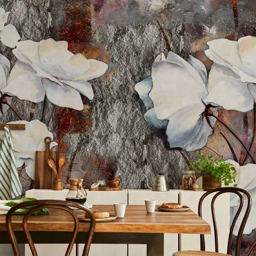 Fototapetes ar lilijām uz pelēka fona - Slēptās emocijas, 90021