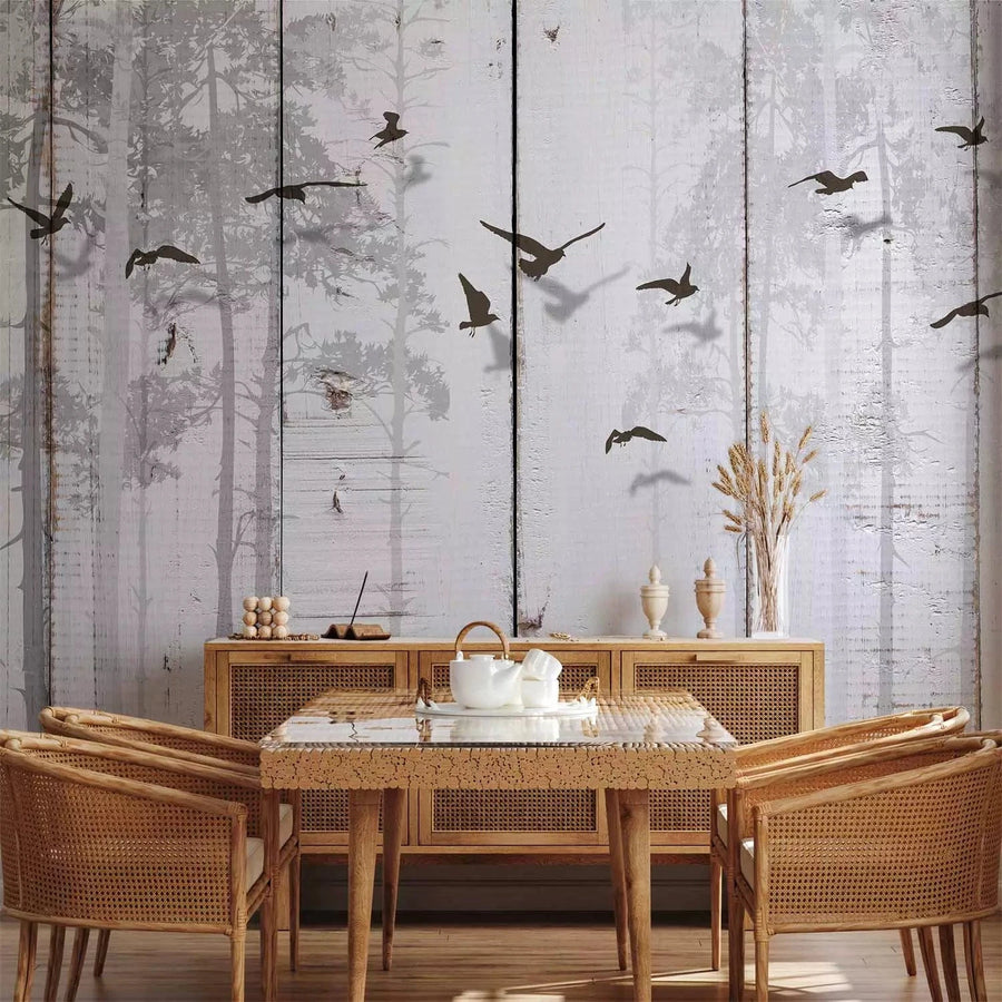 Fototapetes - melni putni uz balta koka faktūras - nopirkt G-ART