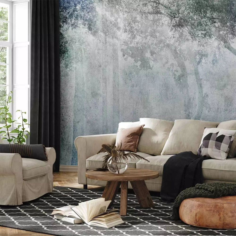Fototapetes ar mežu gaiši pelēkos un zaļos toņos - 131902