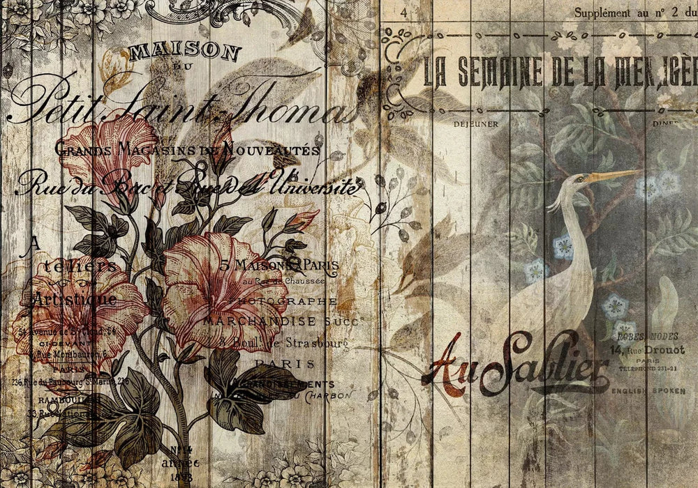 Fototapetes - retro motīvs ar ziediem un uzrakstiem franču valodā G-ART