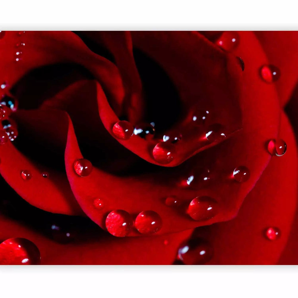 Fototapetes - Sarkana roze un rasas pilieni - ziedu motīvs ar rozēm G-ART