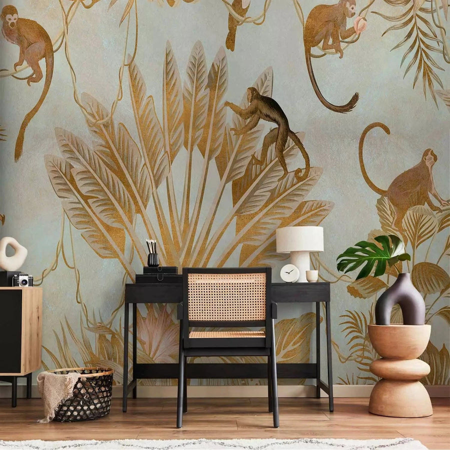 Fototapetes - Zelta džungļi – eksotiskie dzīvnieki un augi G-ART