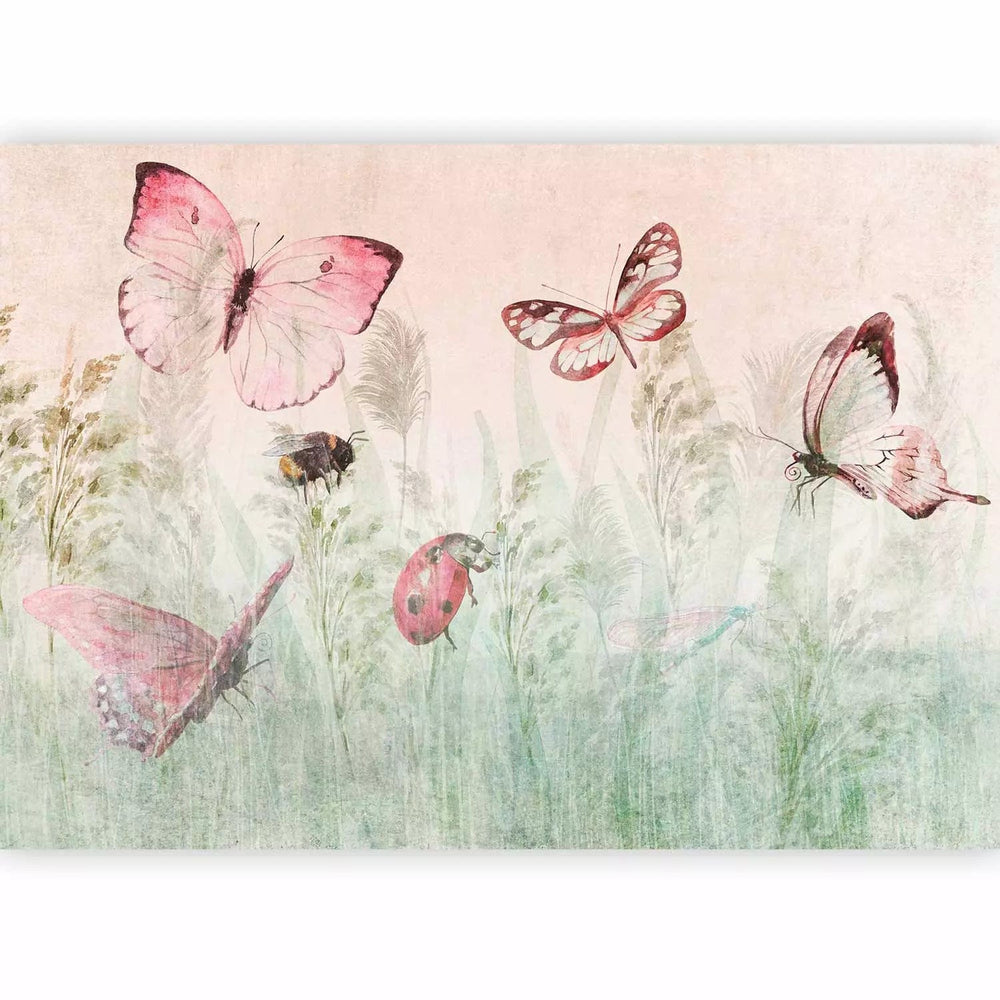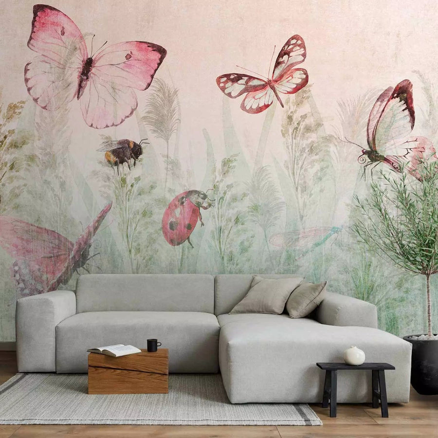 Fototapetes - Kukaiņi lauku pļavā: mārīte un tauriņis, 143845