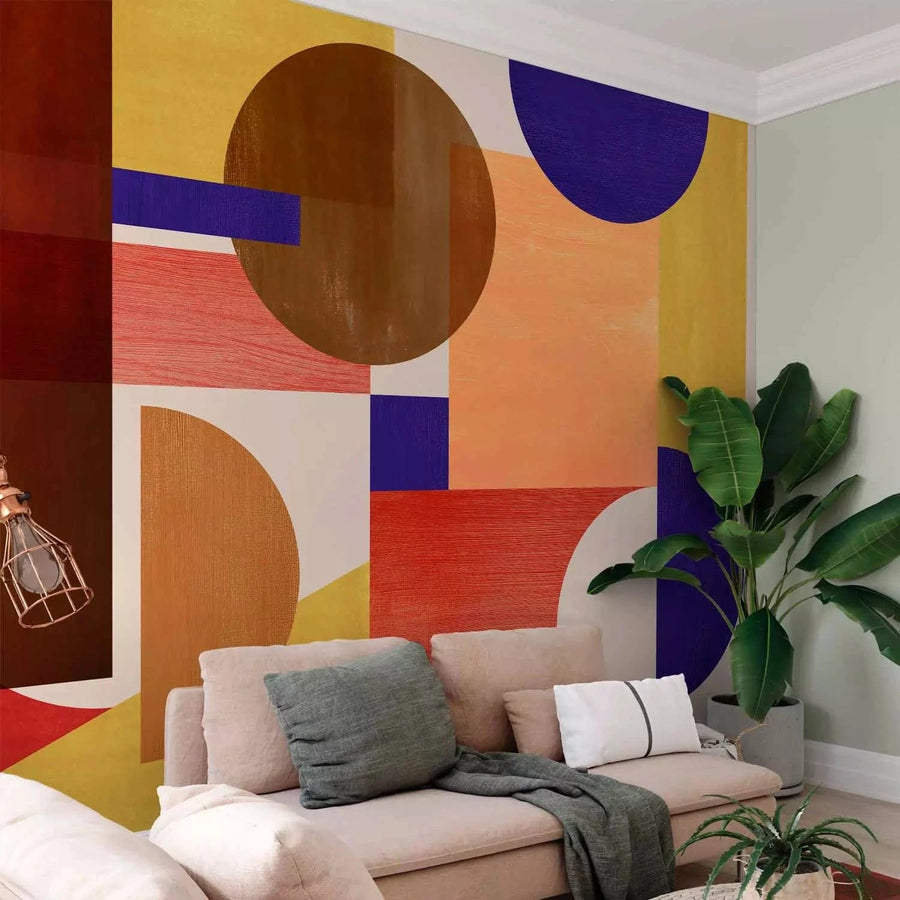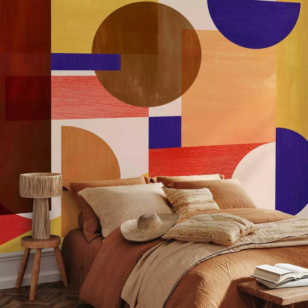 Fototapetes ar ģeometrisku rakstu – apļi un taisnstūri košās krāsās G-ART