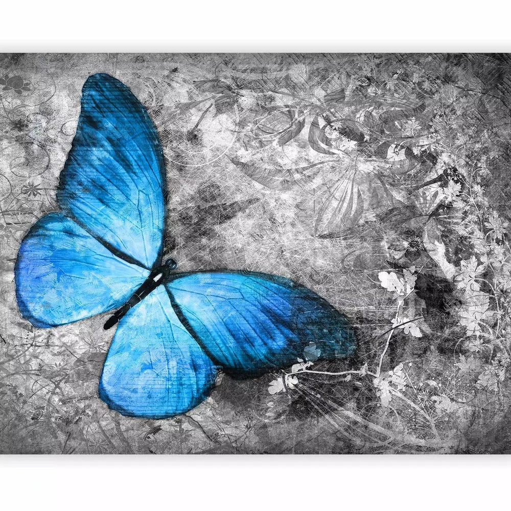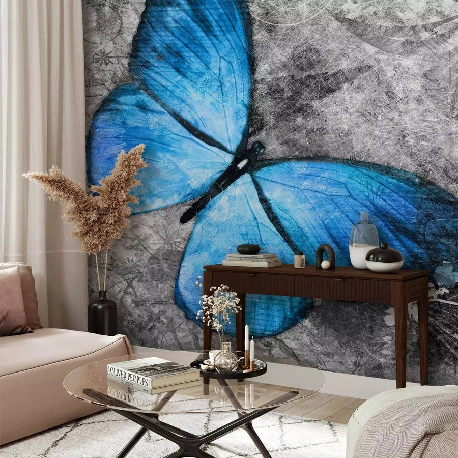 Fototapetes ar tauriņiem - Zils tauriņš, zilā/pelēkā krāsā G-ART