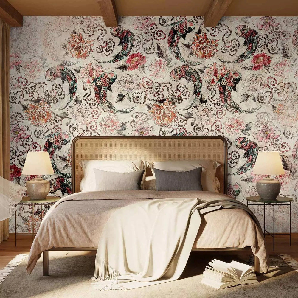 Fototapetes - Japāņu motīvs ar zivīm un ornamentiem - interjeram G-ART