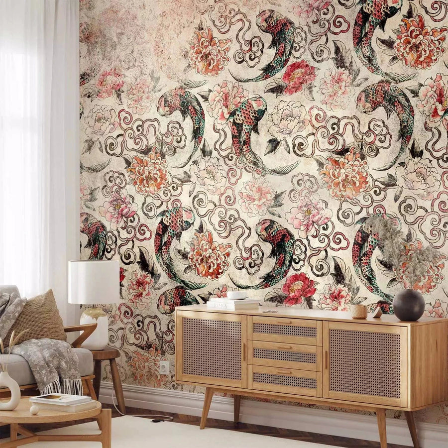 Fototapetes - Japāņu motīvs ar zivīm un ornamentiem - 142391