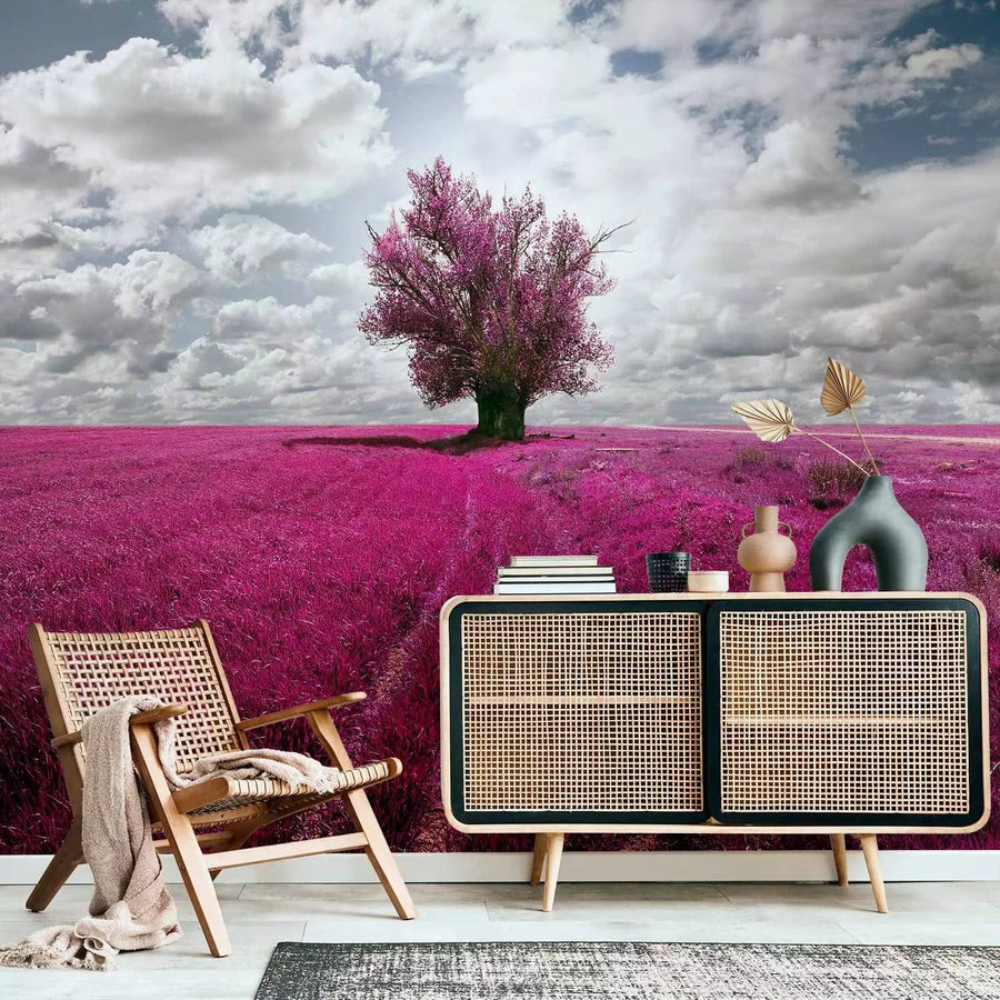 Fototapetes ar vientuļu rozā krāsas koku pļavas ainavā - izvēlēties  G-ART