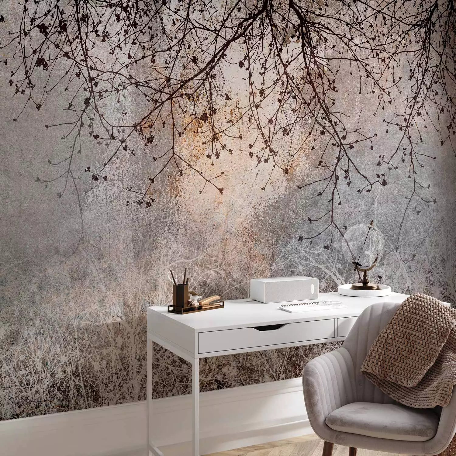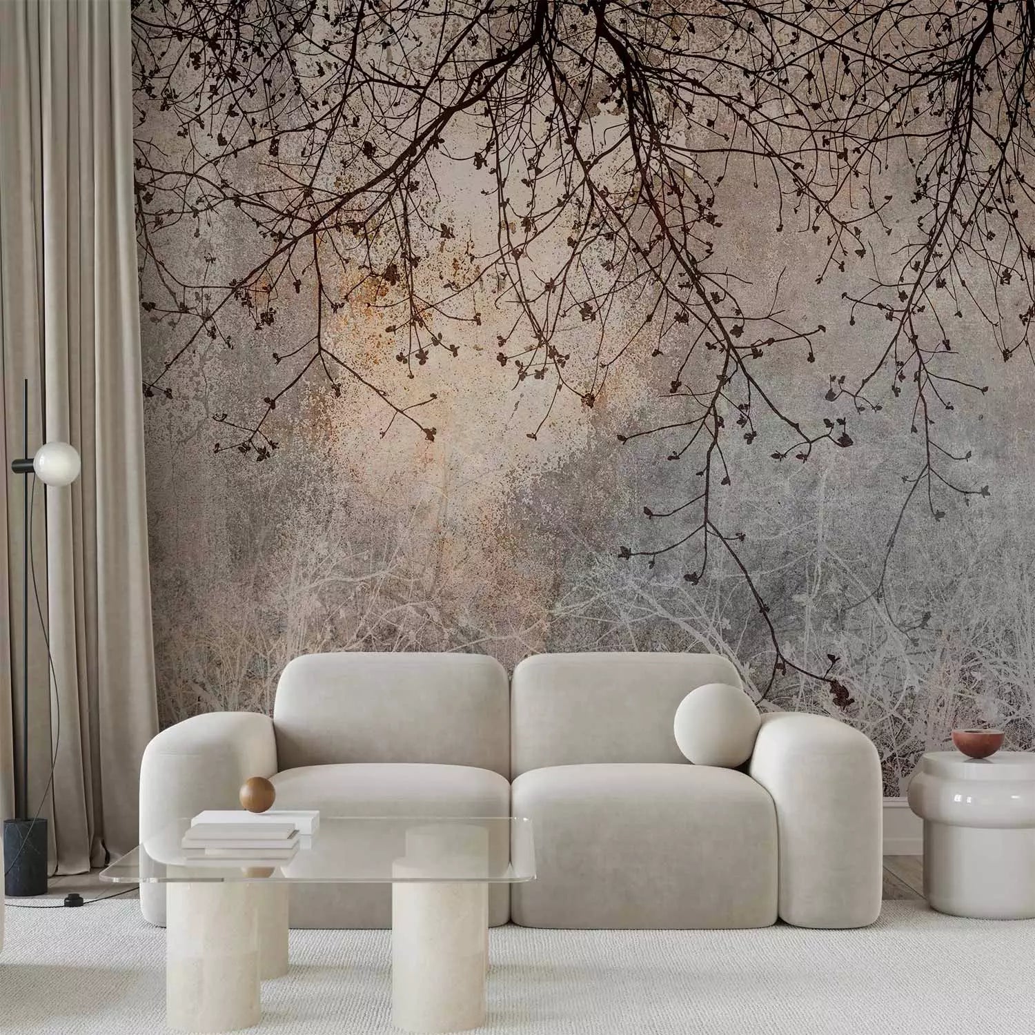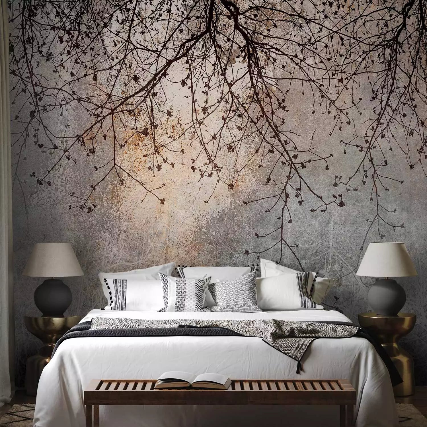 Fototapetes - Tumšas koku zari uz pelēka fona, 142597