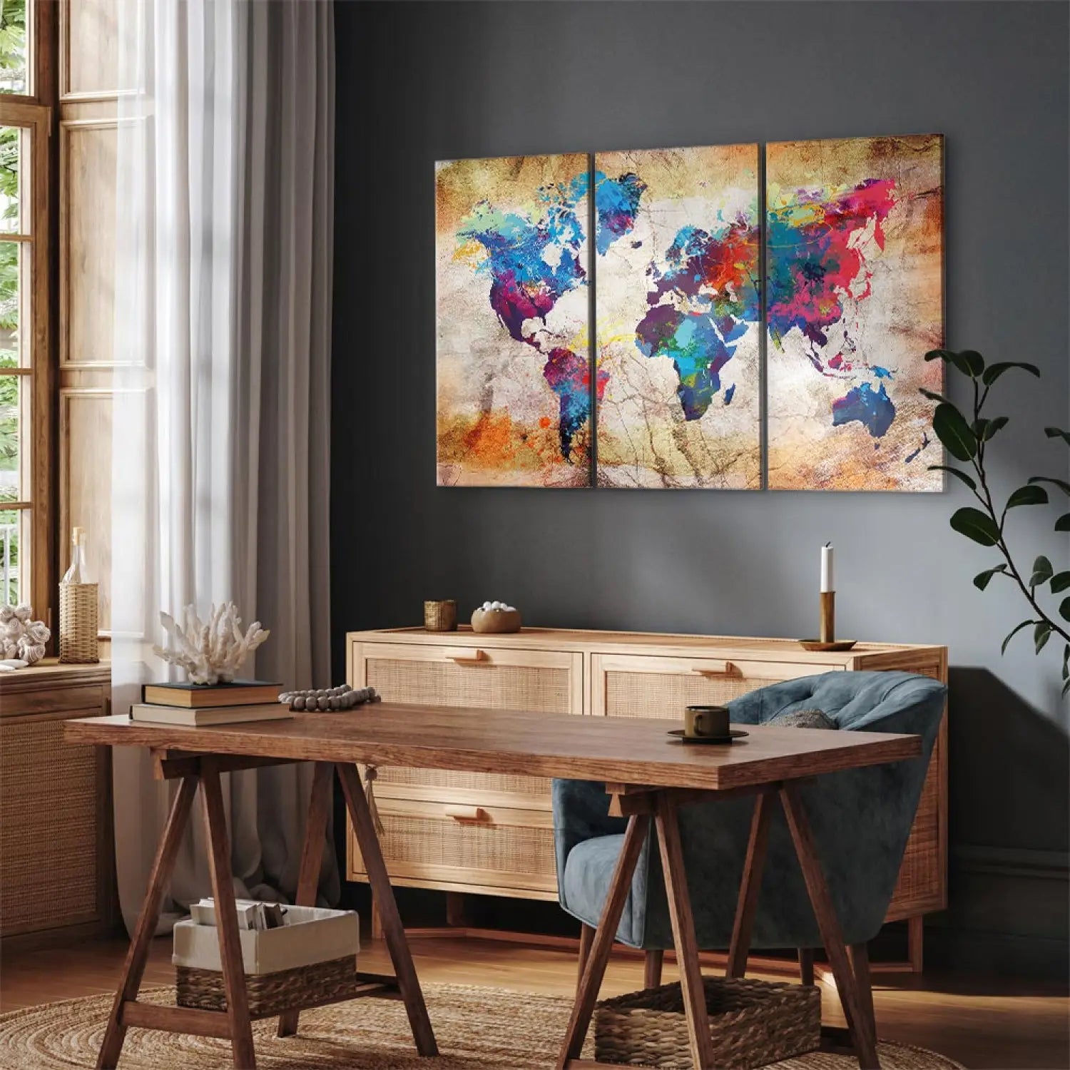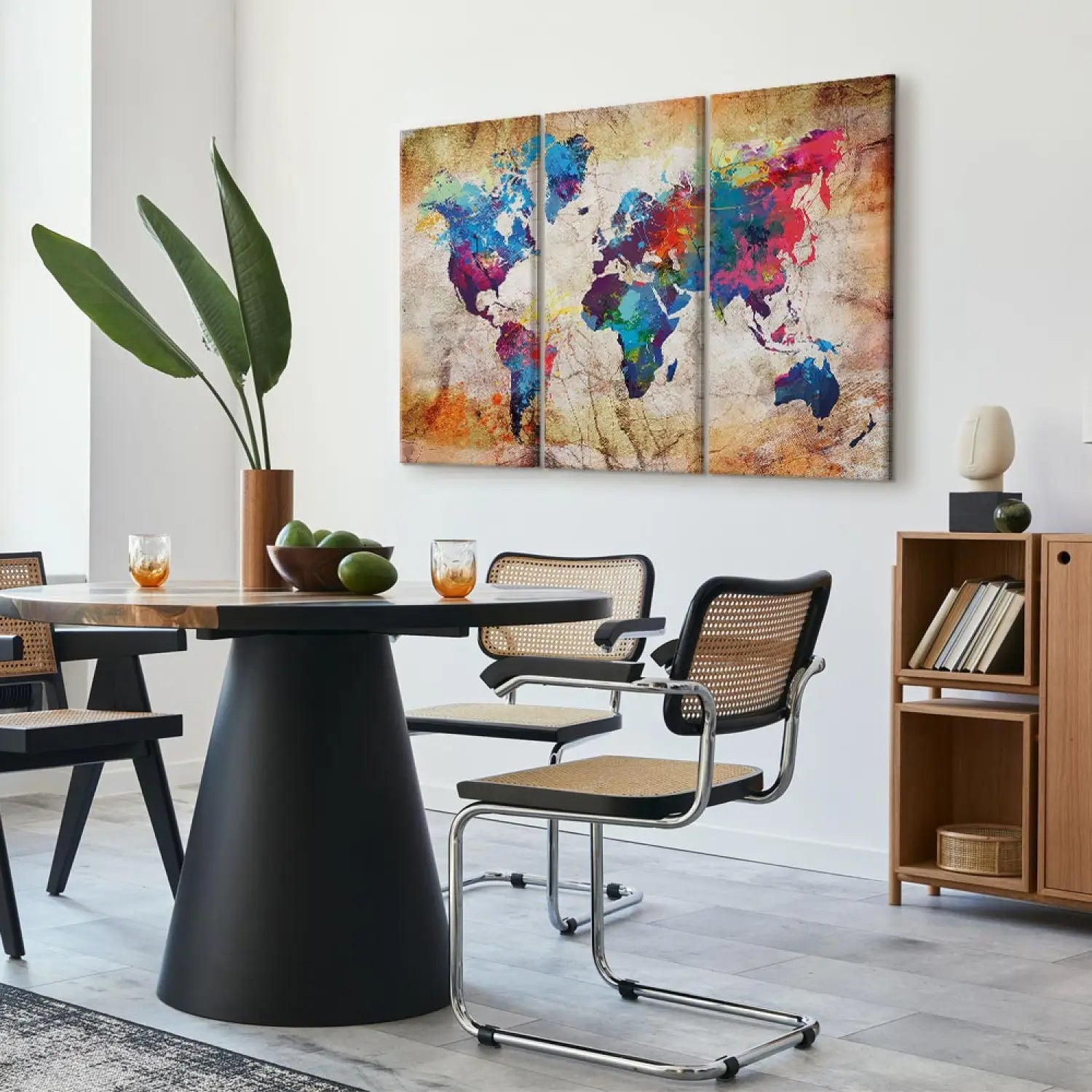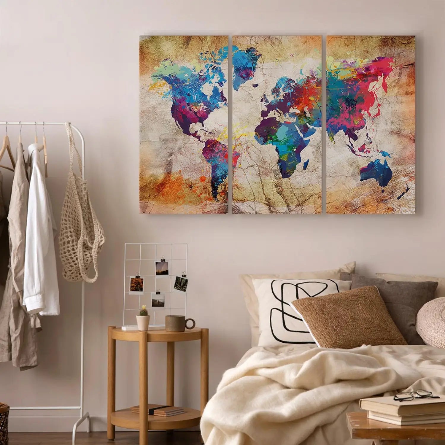 Kanva - Daudzkrāsaina pasaules karte uz bēša fona, 97482, (x3)