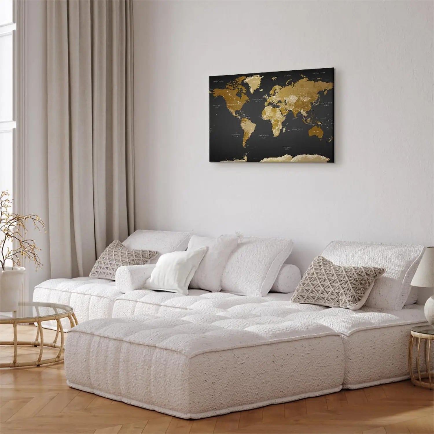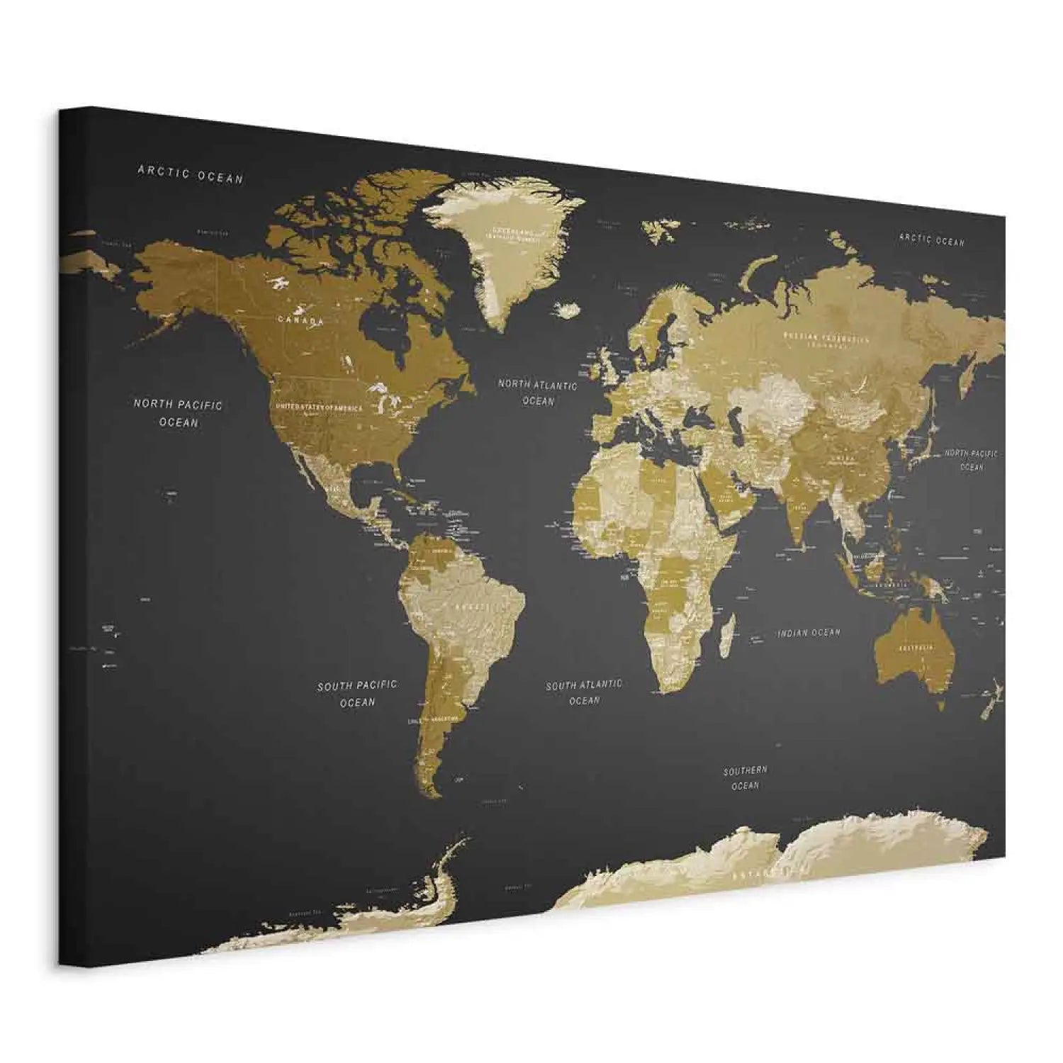 Kanva ar pasaules karti zeltā krāsā uz melna - Mūsdienu estētika, 94574