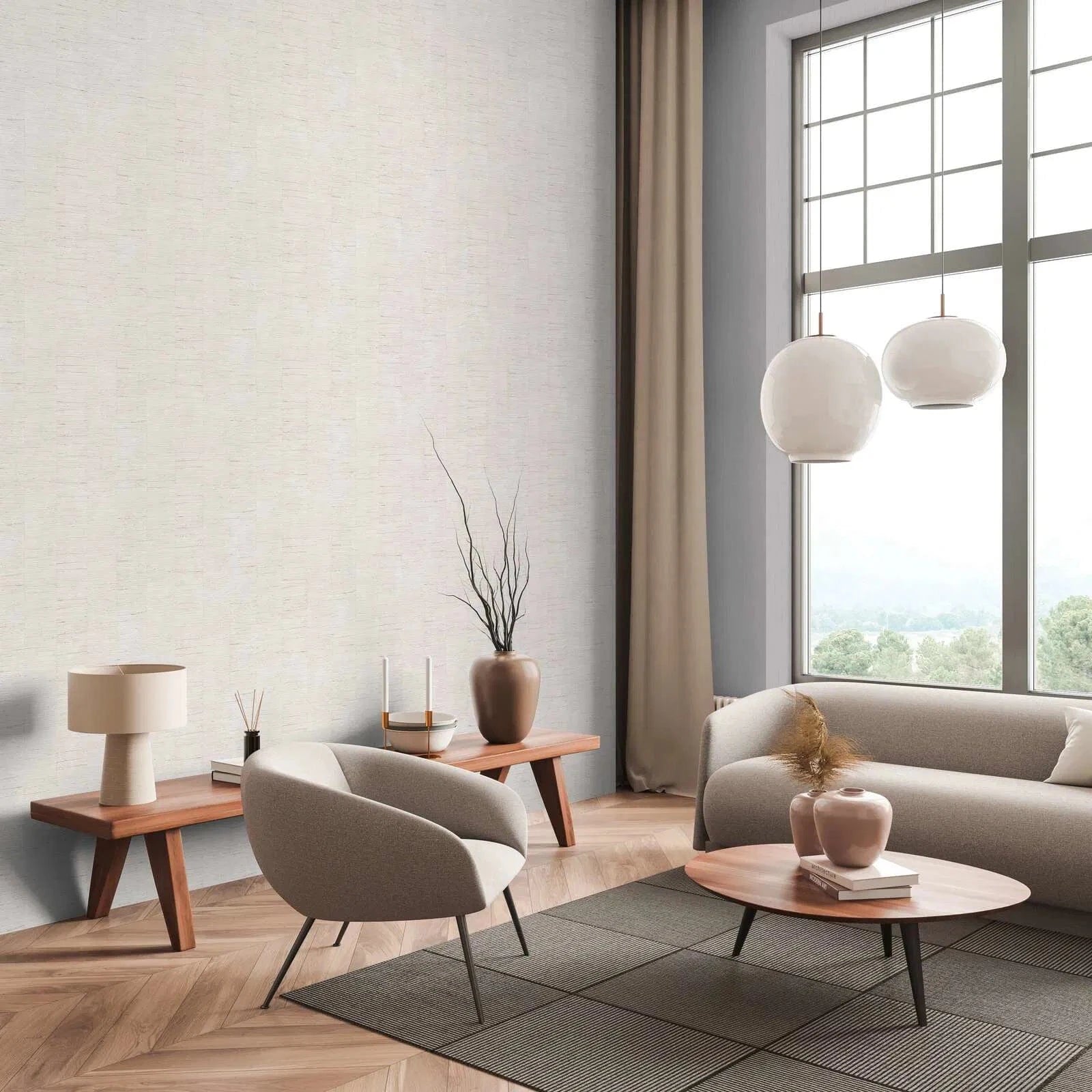 Daniel Hechter krēmkrāsas modernas tapetes ar abstraktu bambusa rakstu piešķir interjeram vieglumu un dabisku eleganci.