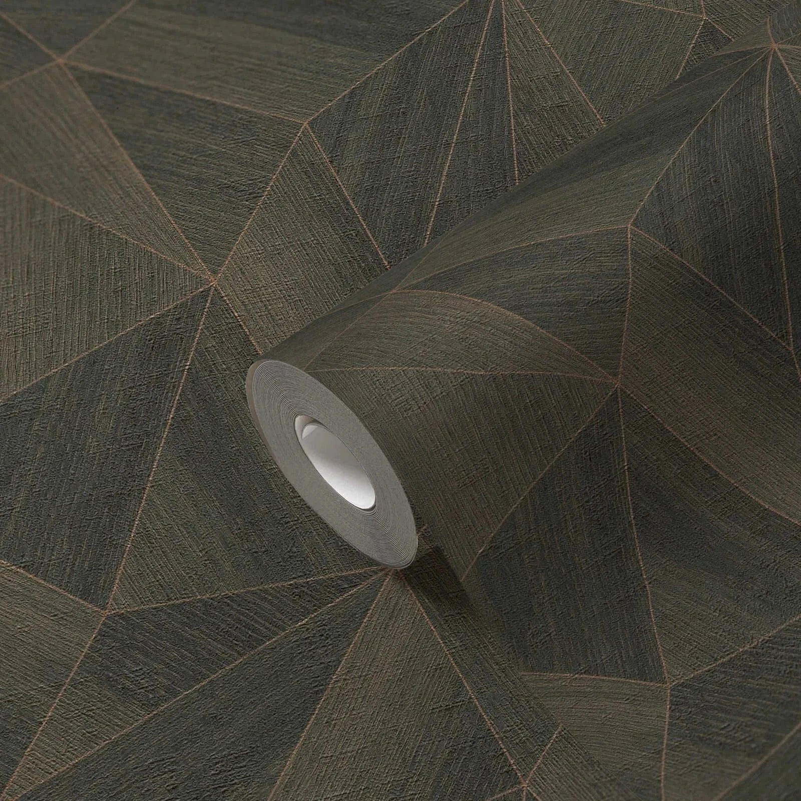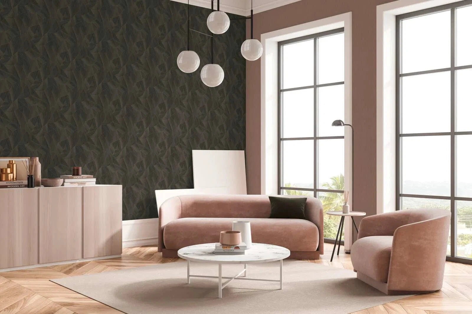 Daniel Hechter brūnas neaustas tapetes ar modernu ģeometrisku rakstu rada stilīgu un dinamisku interjeru.