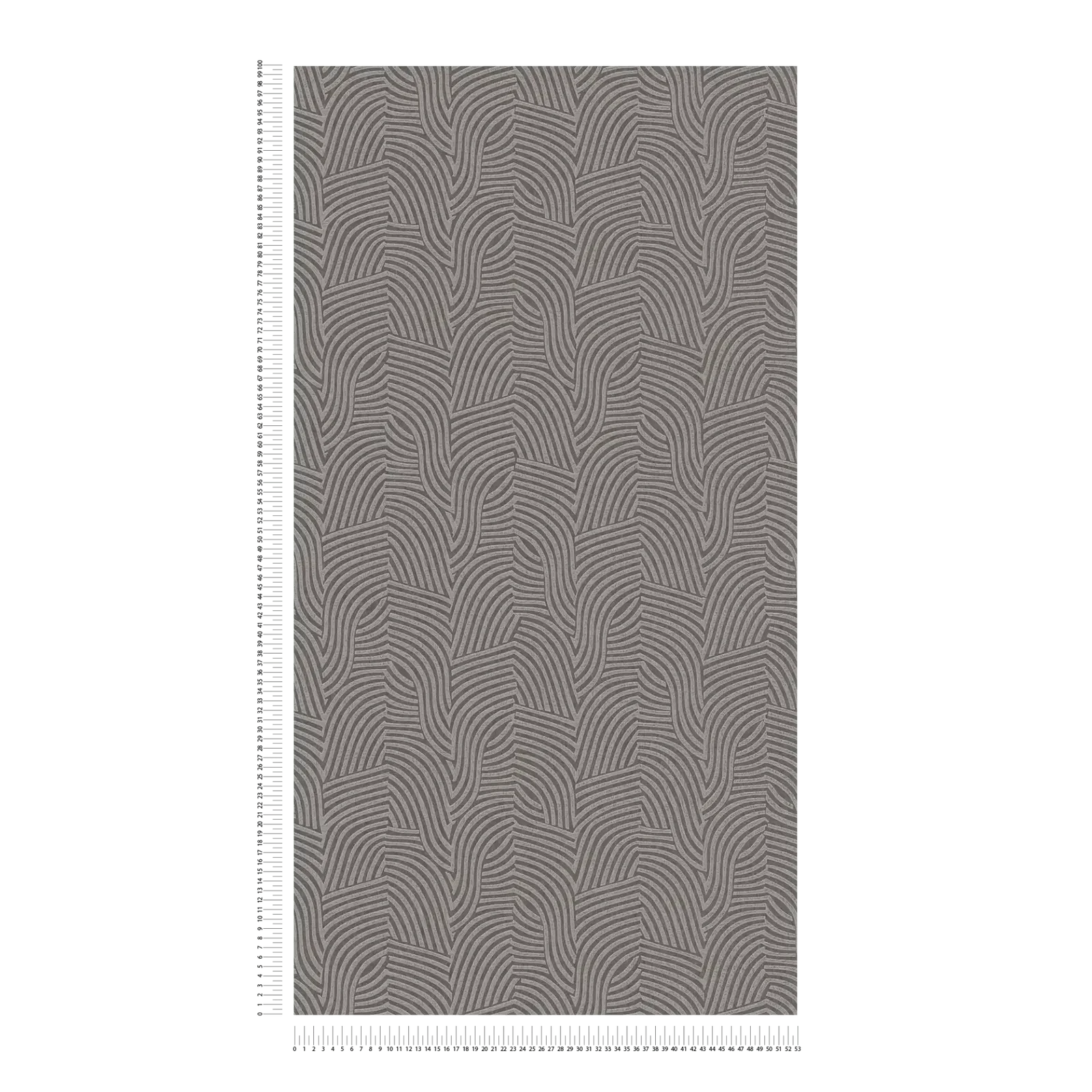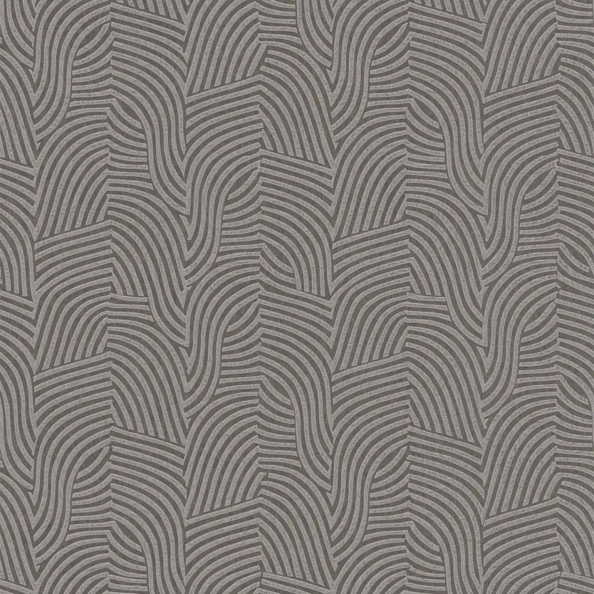 Daniel Hechter tumši pelēkas tapetes ar abstraktu viļņotu līniju rakstu piešķir telpai modernu un stilīgu izskatu.