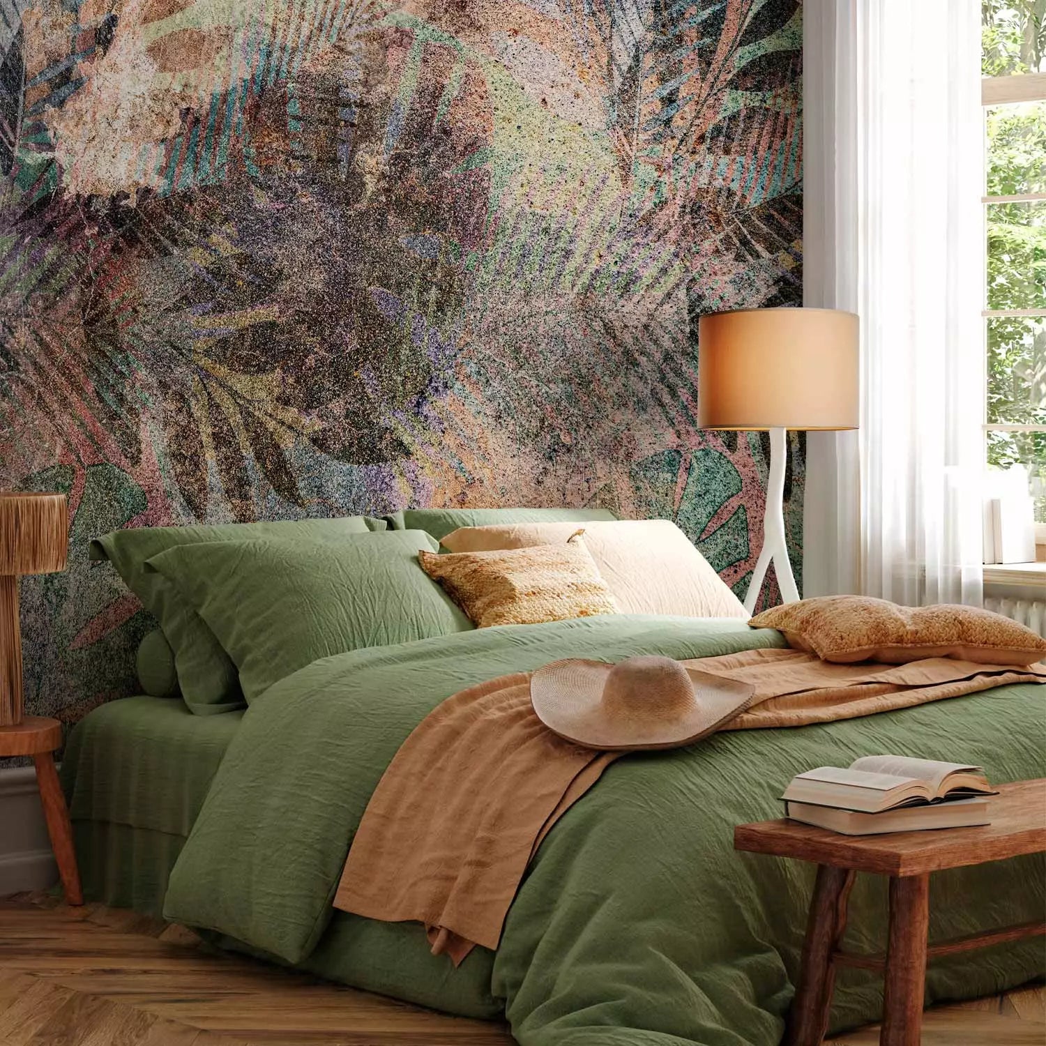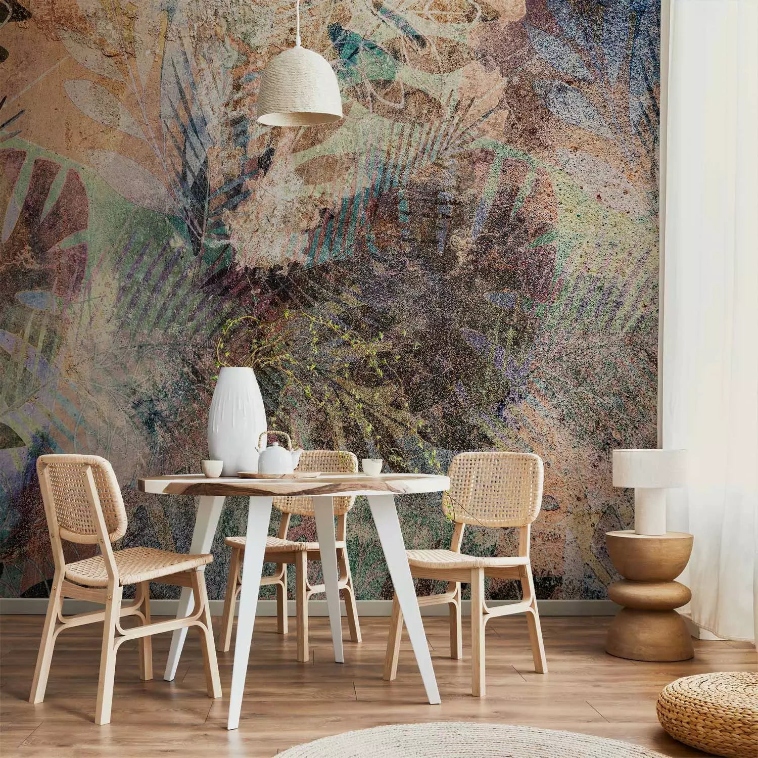 Fototapetes ar tropiskam lapām vintāžas stilā, 142689