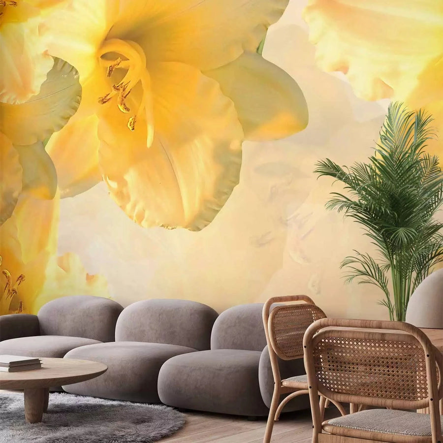 Romantiskas fototapetes ar lilijam šampaņa krāsā - premium klasse G-ART