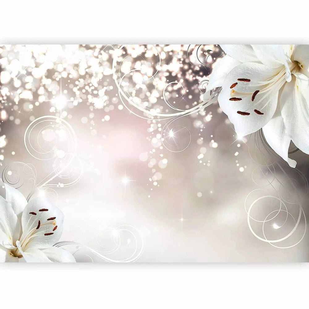 Fototapetes ar lilijām - Maģiska kompozīcija, pelēka/balta G-ART