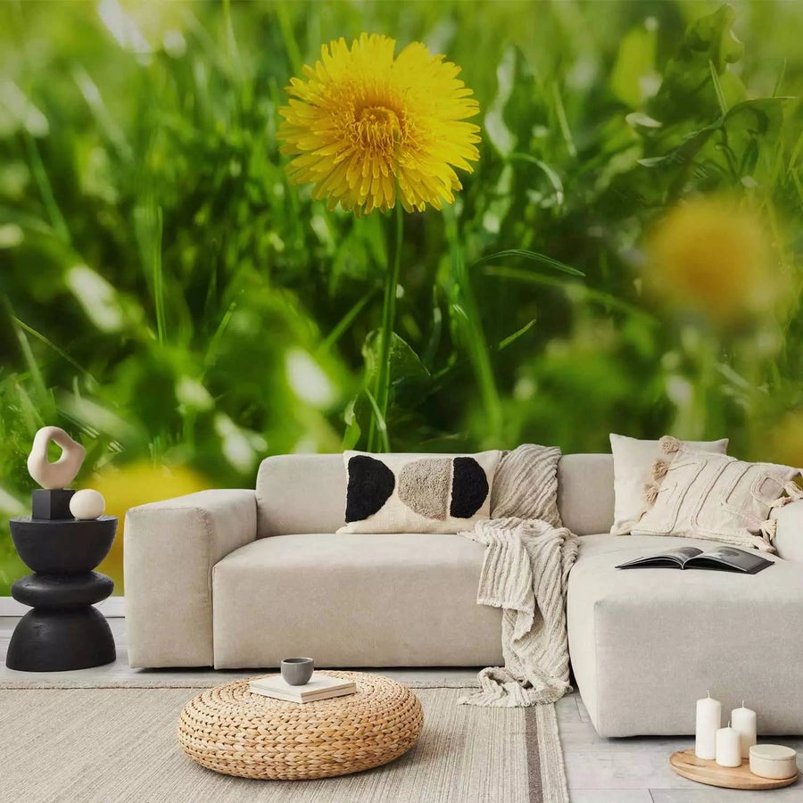Fototapetes ar pienenēm - Dzeltenas pienenes, dzeltenā/zaļā G-ART