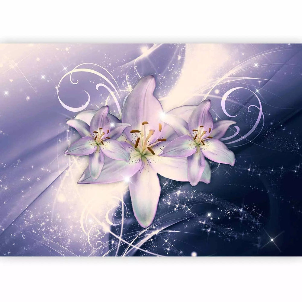 Fototapetes - liliju ziedi uz zila fona ar mirdzuma efektu, EKO G-ART