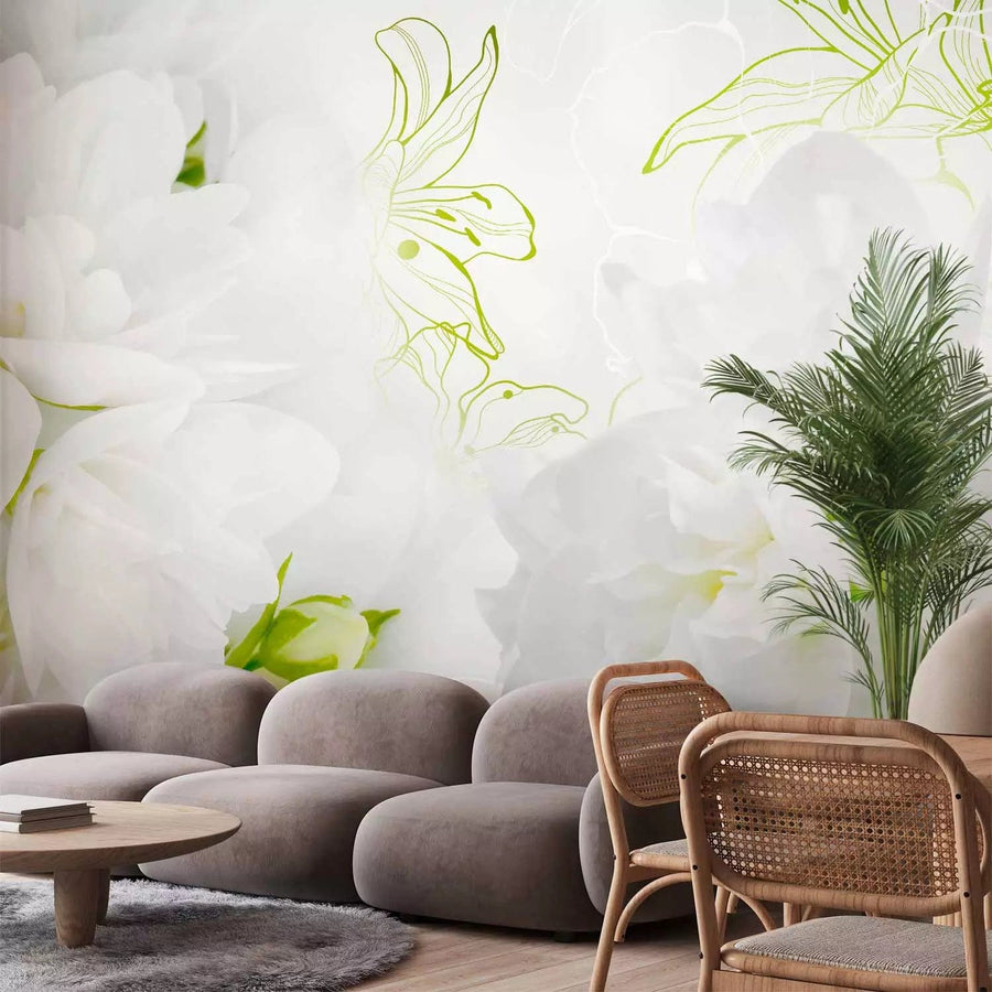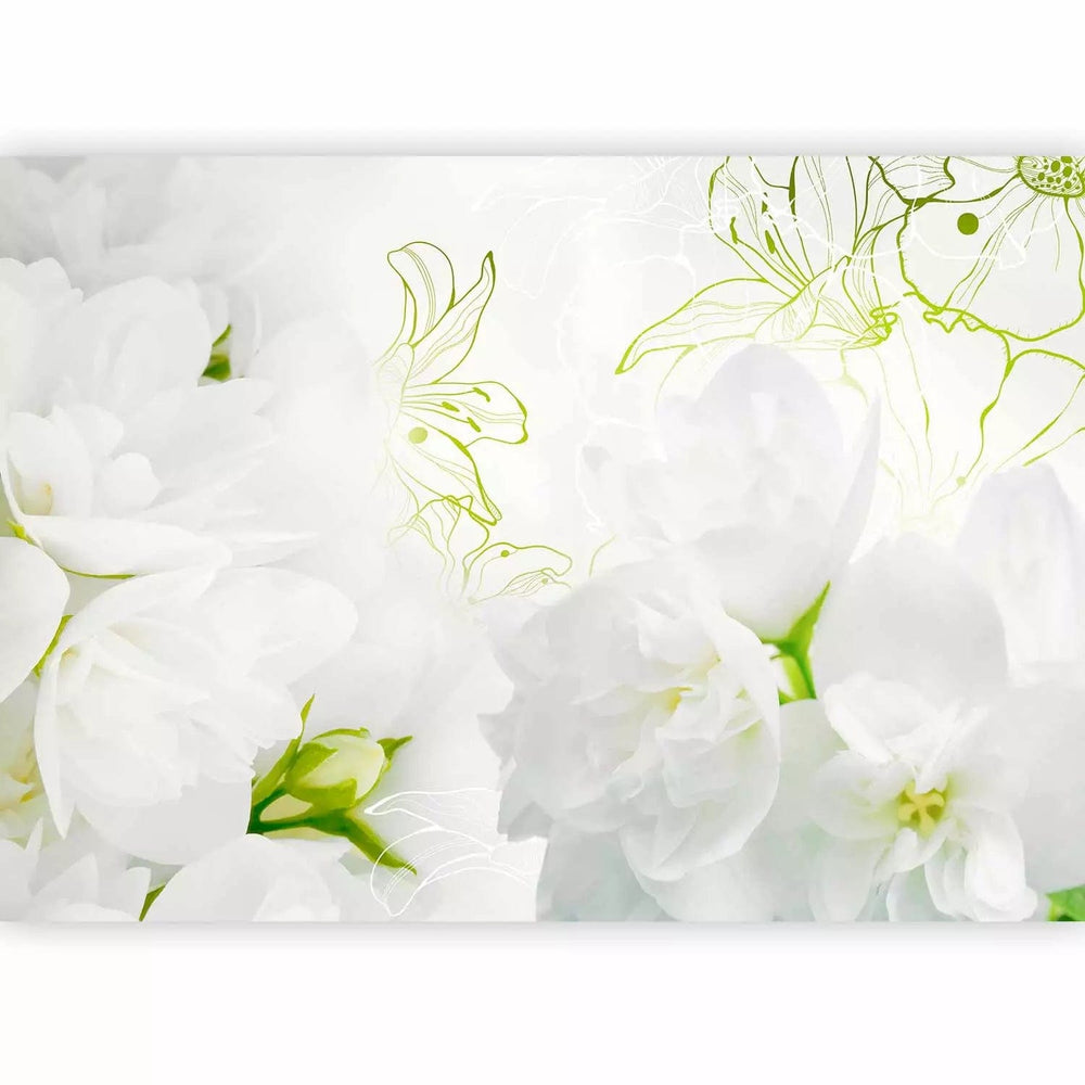 Fototapetes - Balts jasmīns ar stilizētiem ziediem zaļos toņos, 60670 G-ART