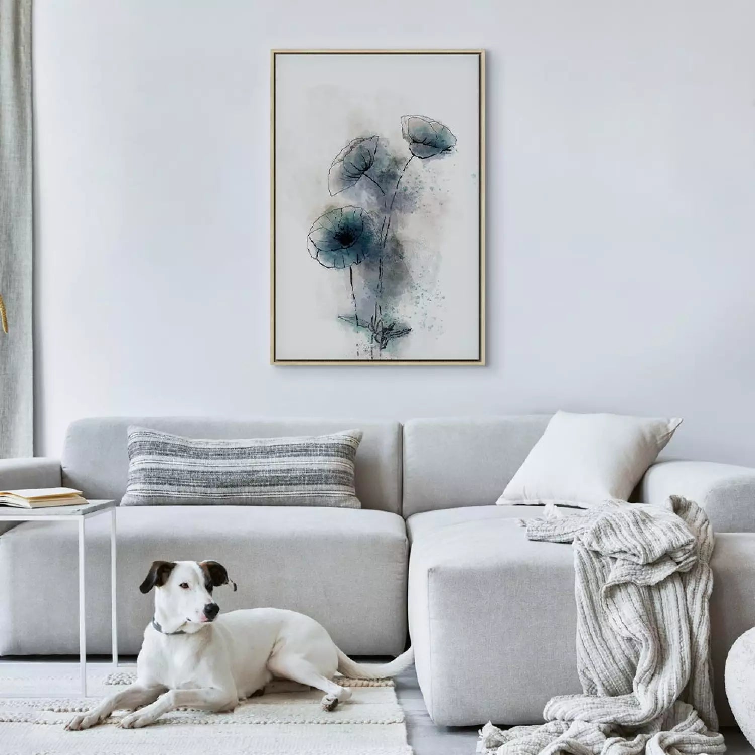 Glezna koka rāmī (dabīgā krāsā) - abstraktas zilas magones, 131974