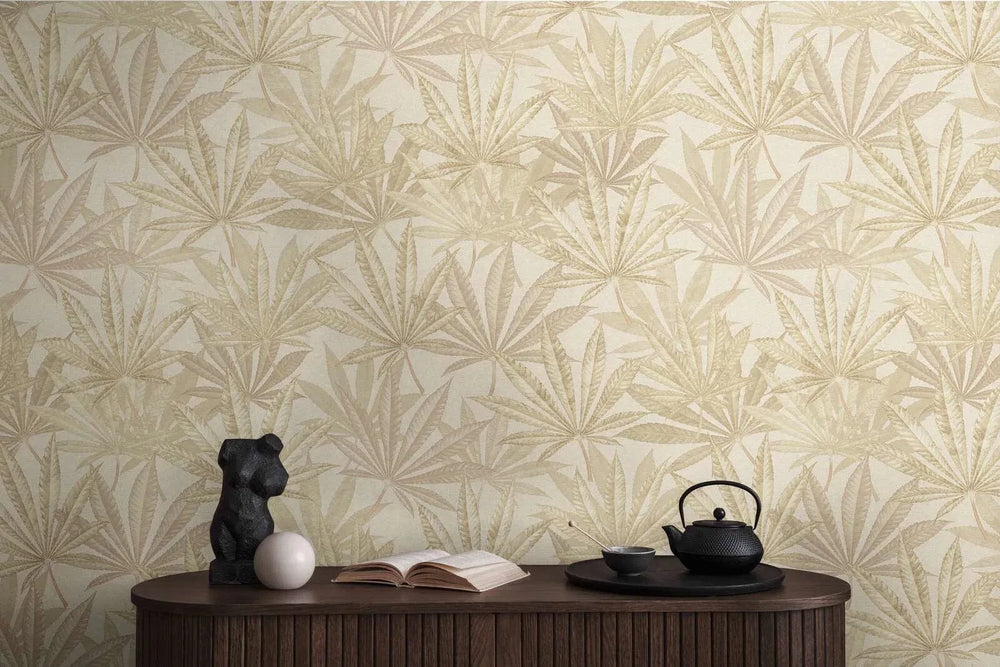 Tapetes ar papardes lapām, matētas: bēša, taupe, krēma, 393475 AS Creation