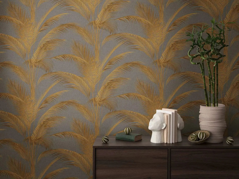 Flizelīna tapetes ar palmu lapām un zelta akcentiem - 1414674