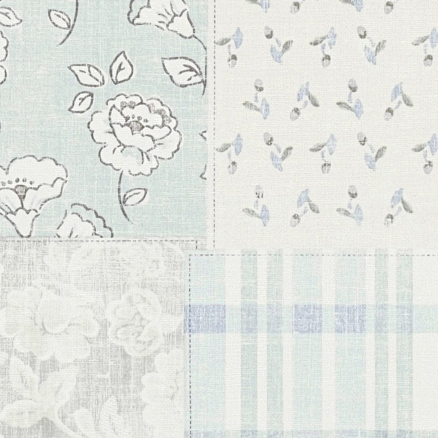 Kantrī stila tapetes ar ziedu rakstu: zilā un pelēkā krāsā, 390664 AS Creation