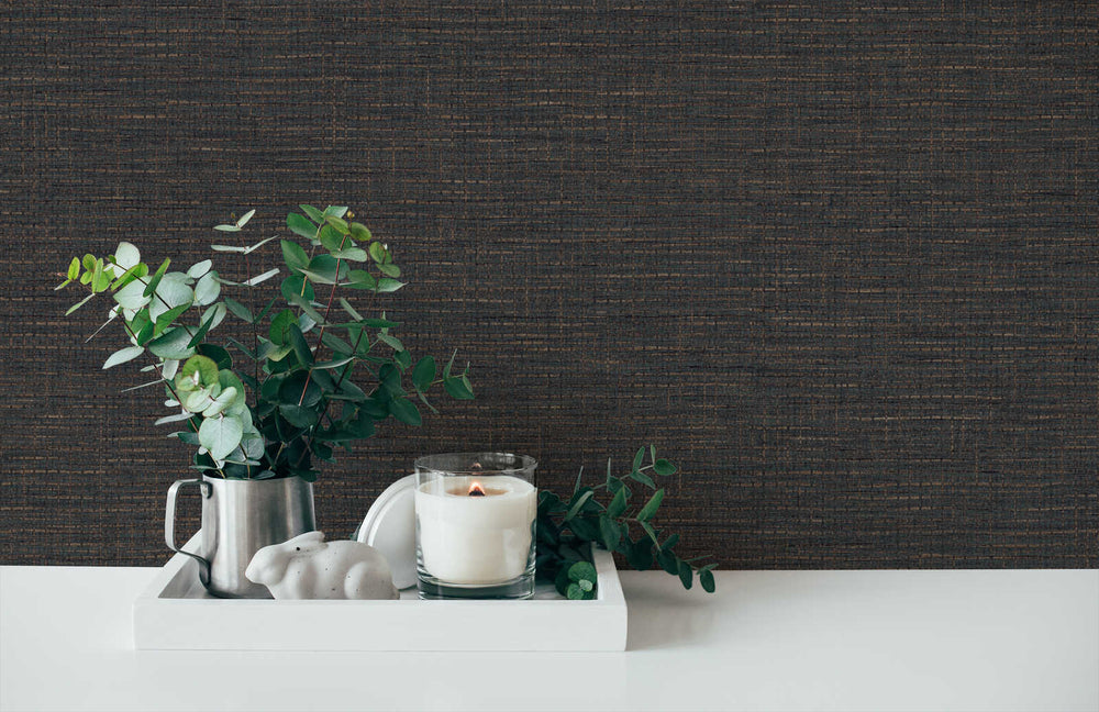 Vienkrāsainas tapetes ar auduma struktūru: melnā krāsā, 1400462