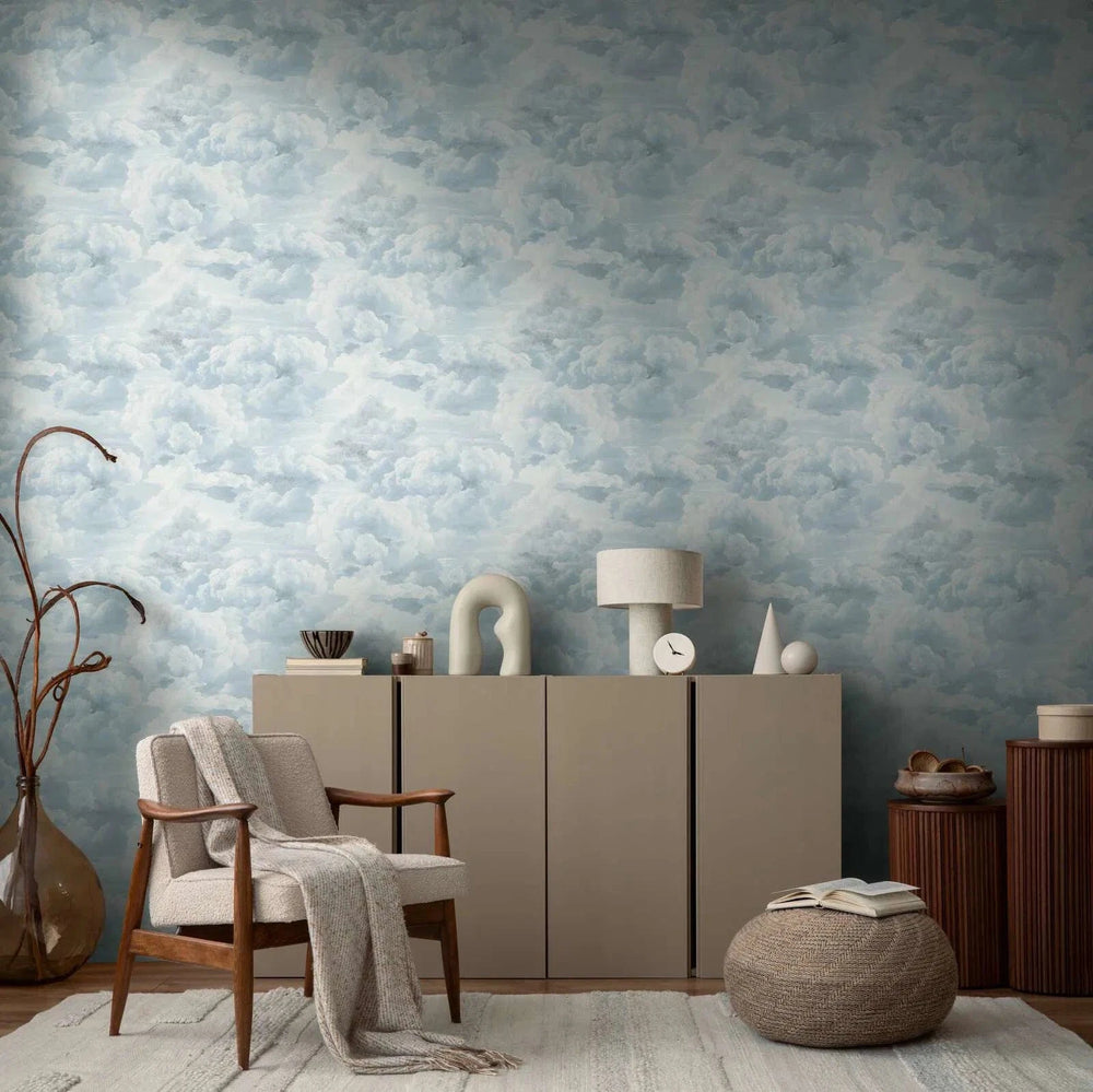 Tapetes - abstrakts mākoņu raksts glezniecības stilā zilos toņos - 1414755