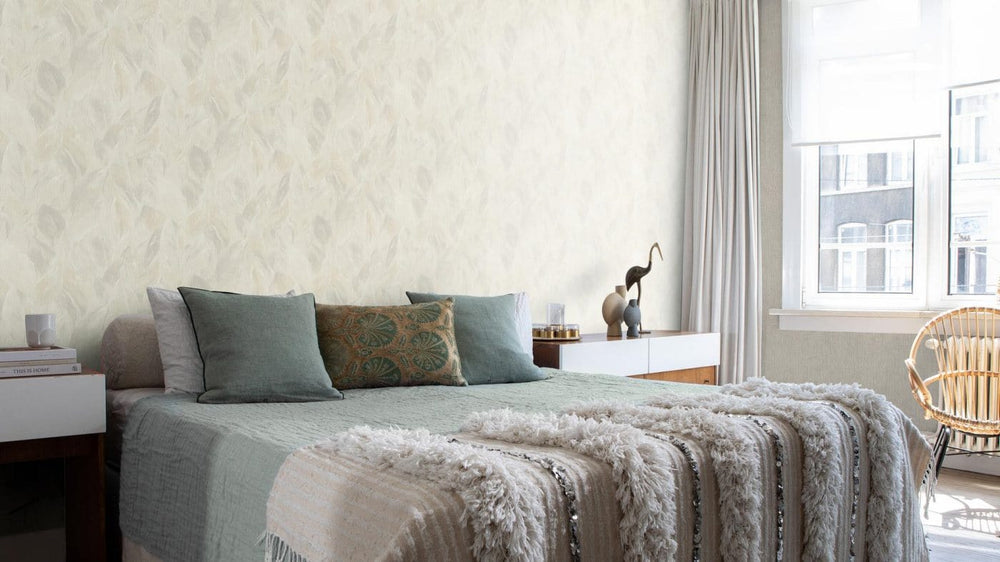 Tapetes ar smalku tekstūru, kas atgādina lapas, organiskā stilā, bēšā, 2767236