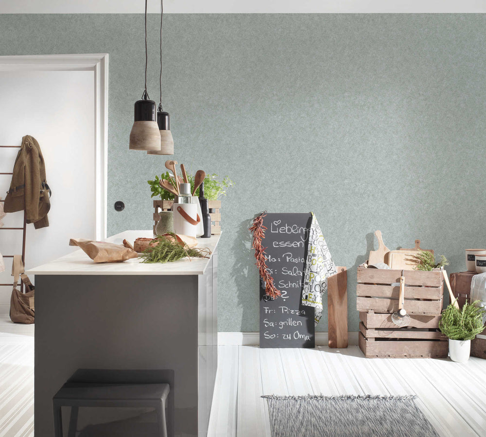 Vienkrāsainas tapetes ar auduma izskatu, gaiši zilā krāsā, 1414774 AS Creation