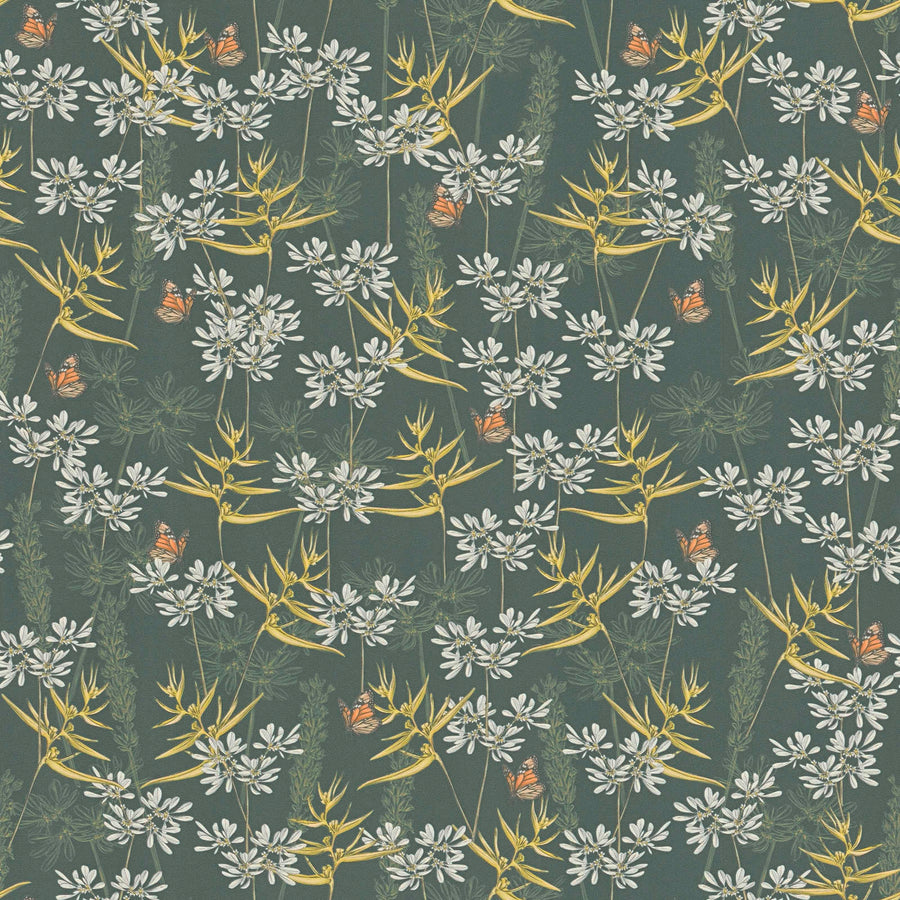 Ziedu tapetes ar zāli un tauriņiem, zaļā un dzeltenā, 394232 AS Creation