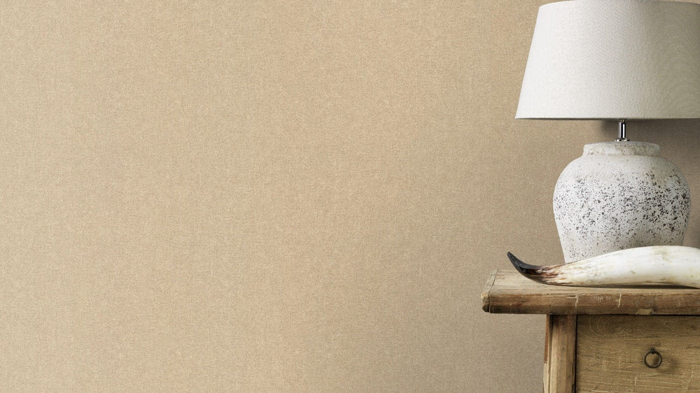 Vienkrāsaina tapete ar auduma struktūru: dzeltenbrūnā krāsā, 1400454