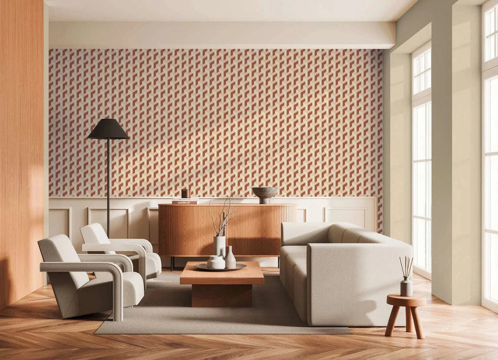 Tapetes ar ģeometrisku rakstu industriālā stilā - krēmkrāsā, 1332741