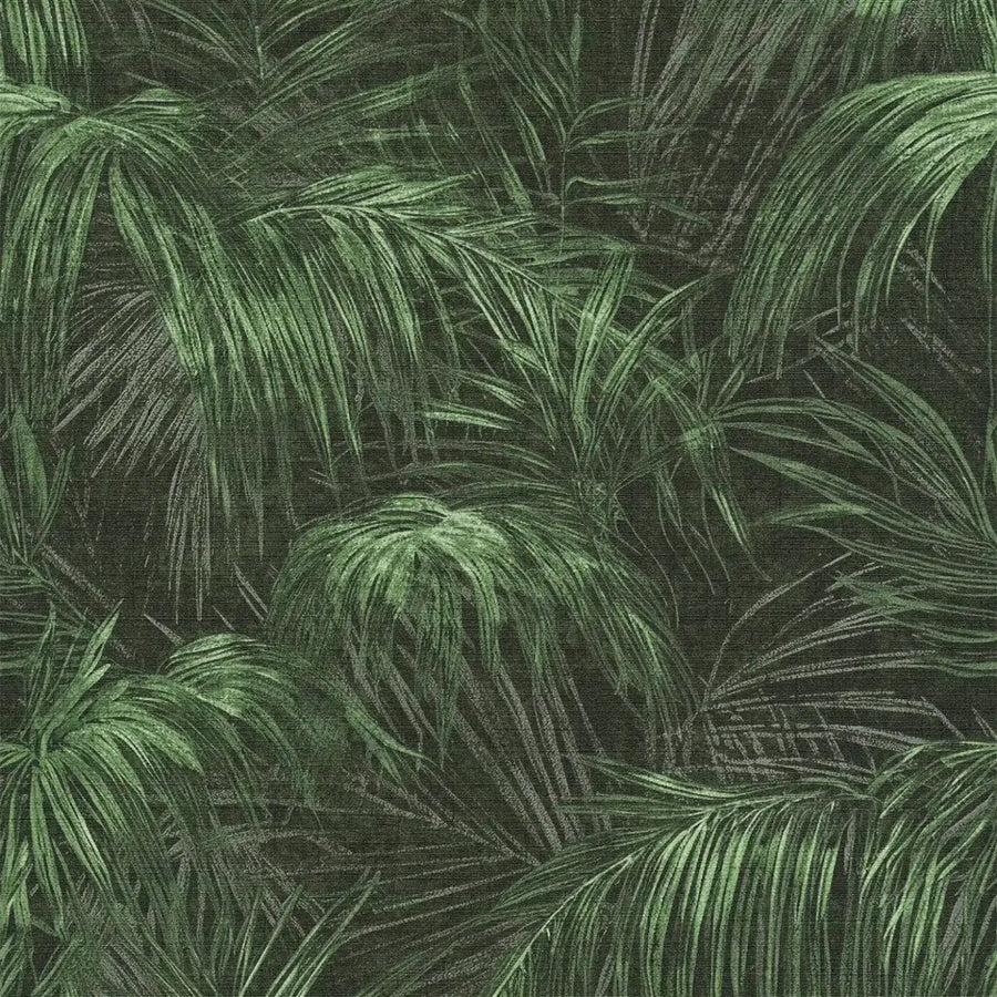 Izteiksmīgas neaustas tapetes ar palmu motīvu zaļā krāsā, 1414706 AS Creation