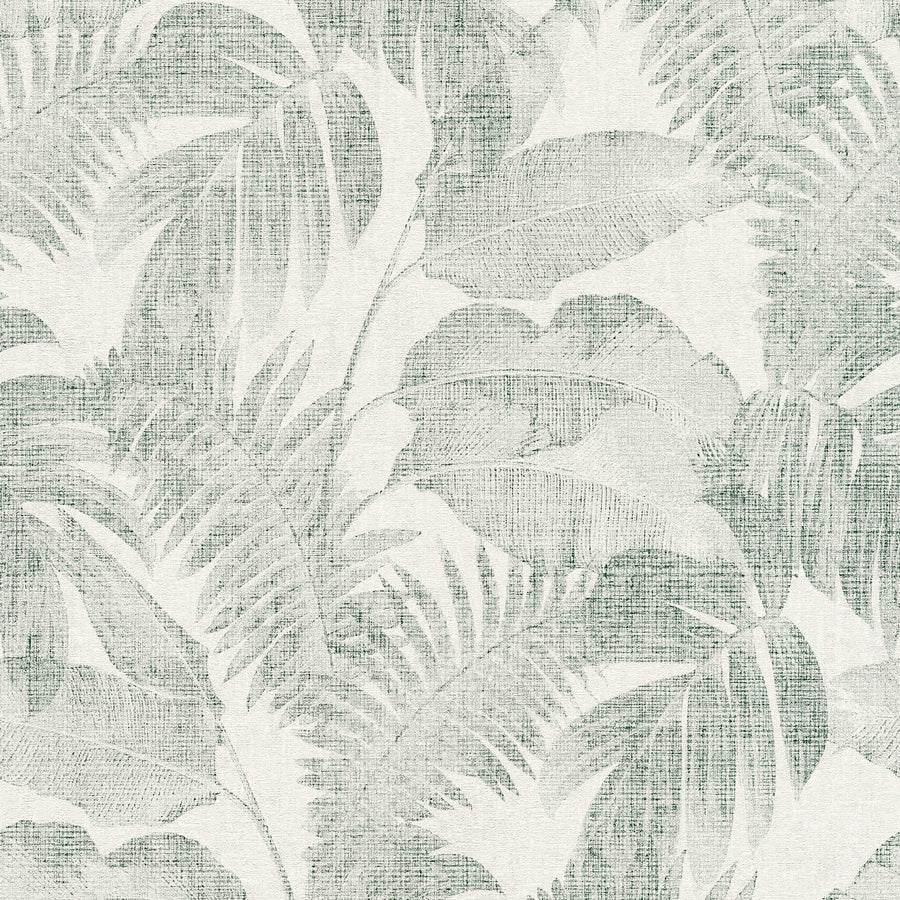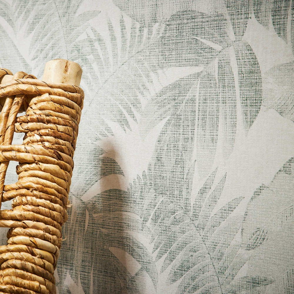 Tapetes ar linu izskatu, Boho džungļu motīvi - balta, zaļa AS 373964 AS Creation
