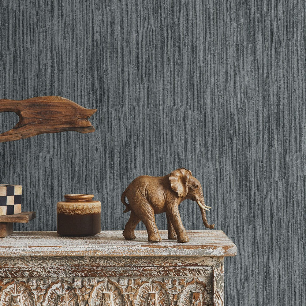 Flizelīna tapetes - auduma tekstūra tumši pelēkā krāsā, 1415017 AS Creation