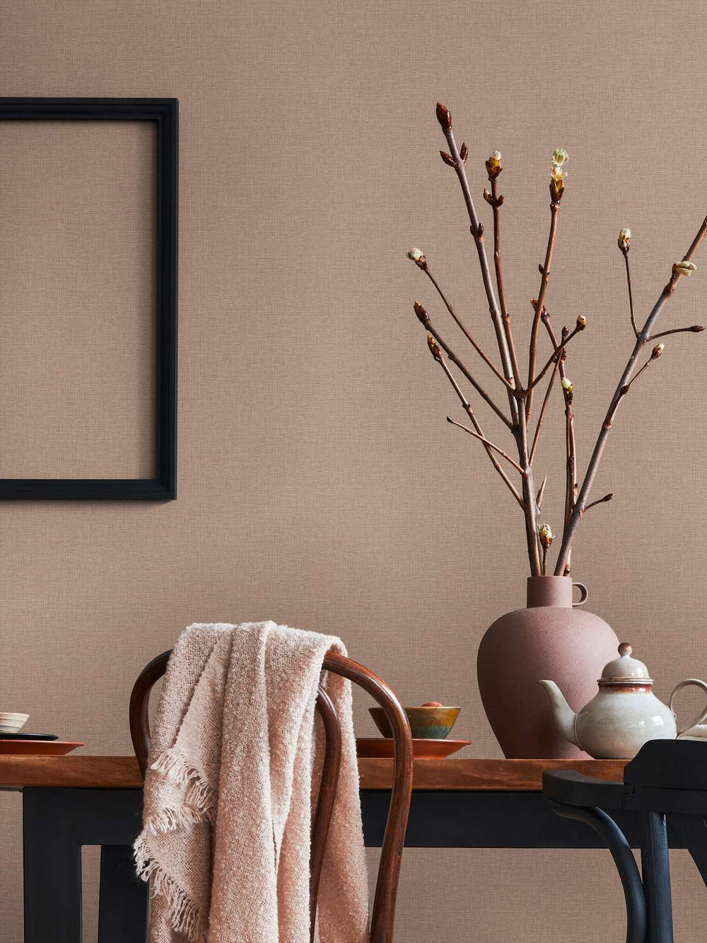Vienkrāsainas flizelīna tapetes ar lina tekstūru: brūnā krāsā, 1367643