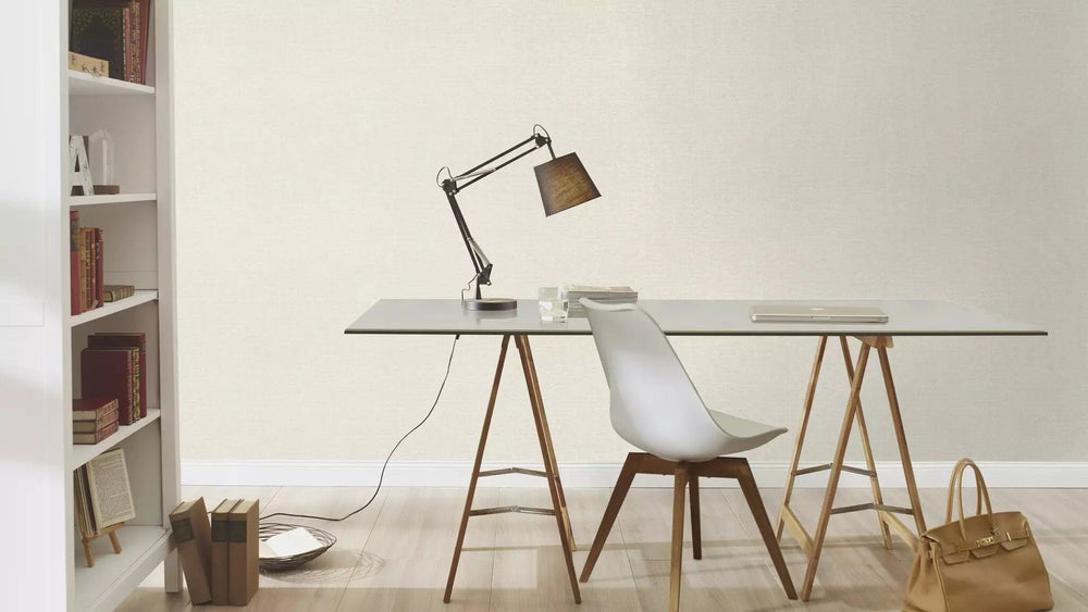 Vienkrāsainas istabai tapetes ar tekstila izskatu - bēšas, 395655 AS Creation
