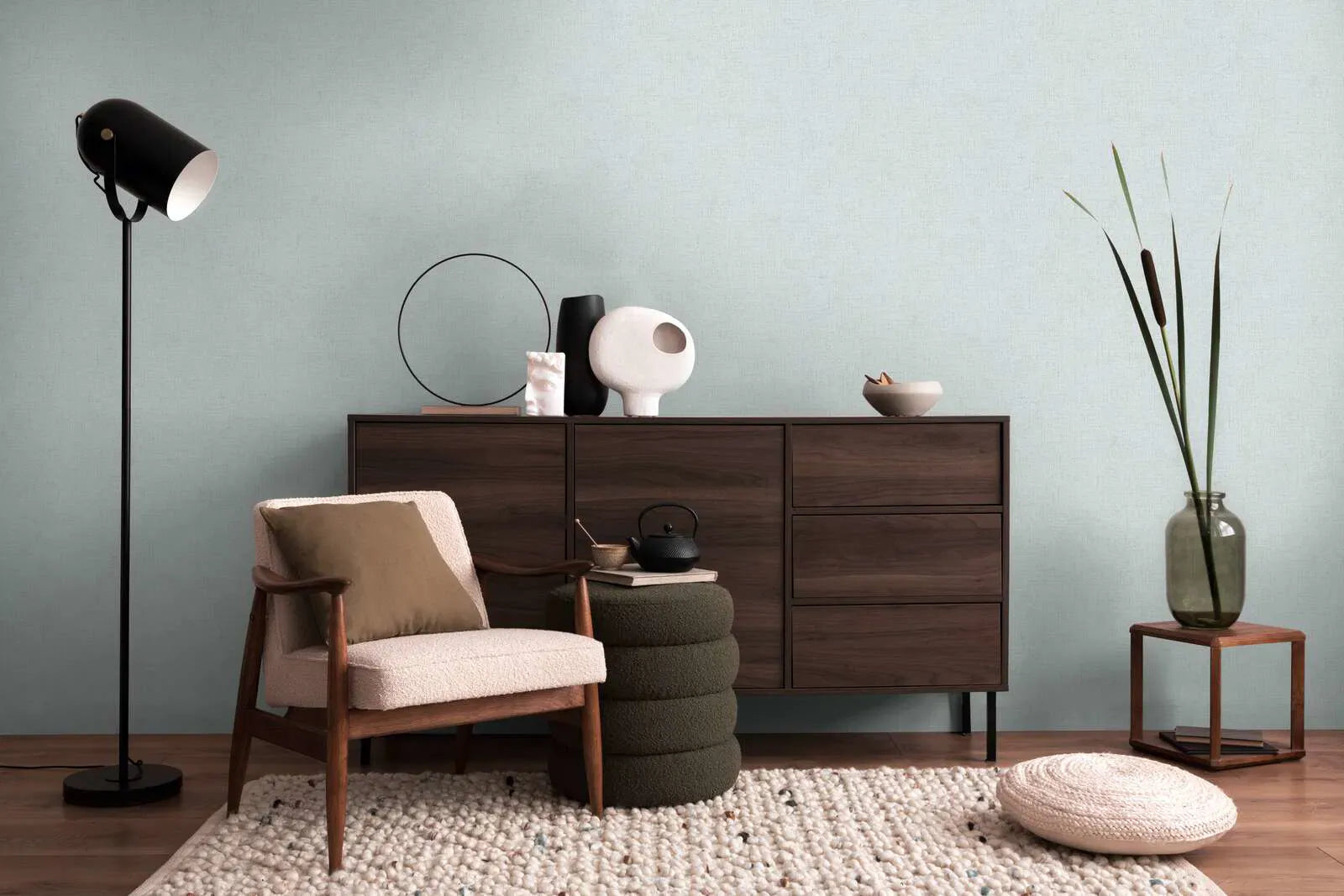 Tapetes raksts ir ar smalku, tekstilam līdzīgu faktūru, kas atgādina smalku linu. Virsma ir ar smalku, nedaudz mainīgu līniju krustveida šķautņu rakstu, kas izvietotas neregulāros intervālos, radot dabisku, organisku efektu. Krāsu gamma ir atturīga, gaiši pelēka ar maigu zila toņa nokrāsu, kas rada mierīgu, funkcionālu, bet draudzīgu atmosfēru. Tekstūra maigi atspoguļo gaismu, radot patīkamu dzīvīgumu uz sienas, bet vienmēr paliekot pieticīga un neuzbāzīga. Kopumā tapetes izskatās mūžīgas, elegantas un daudzpusīgas, ideāli piemērotas gan moderniem, gan klasiskiem interjeriem.