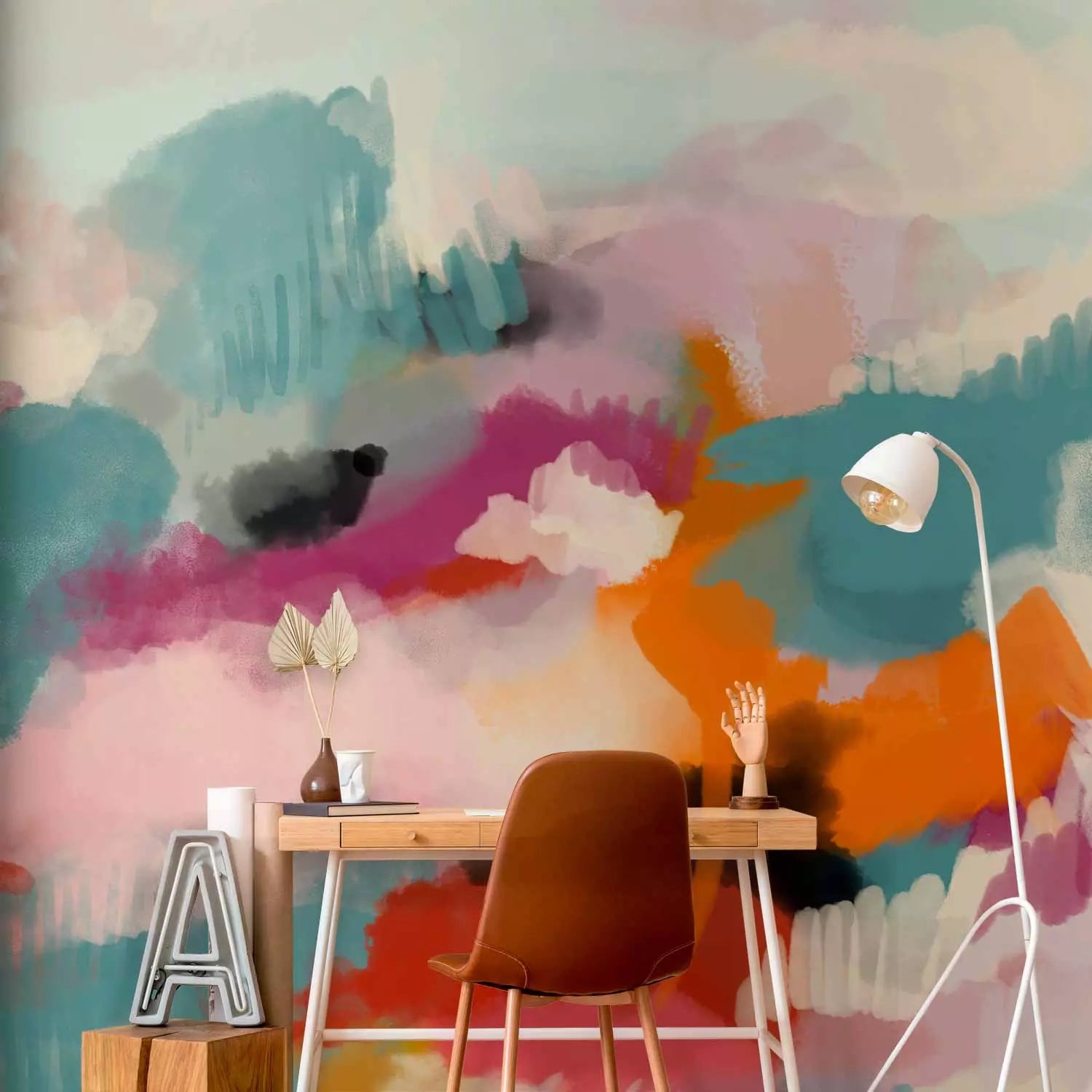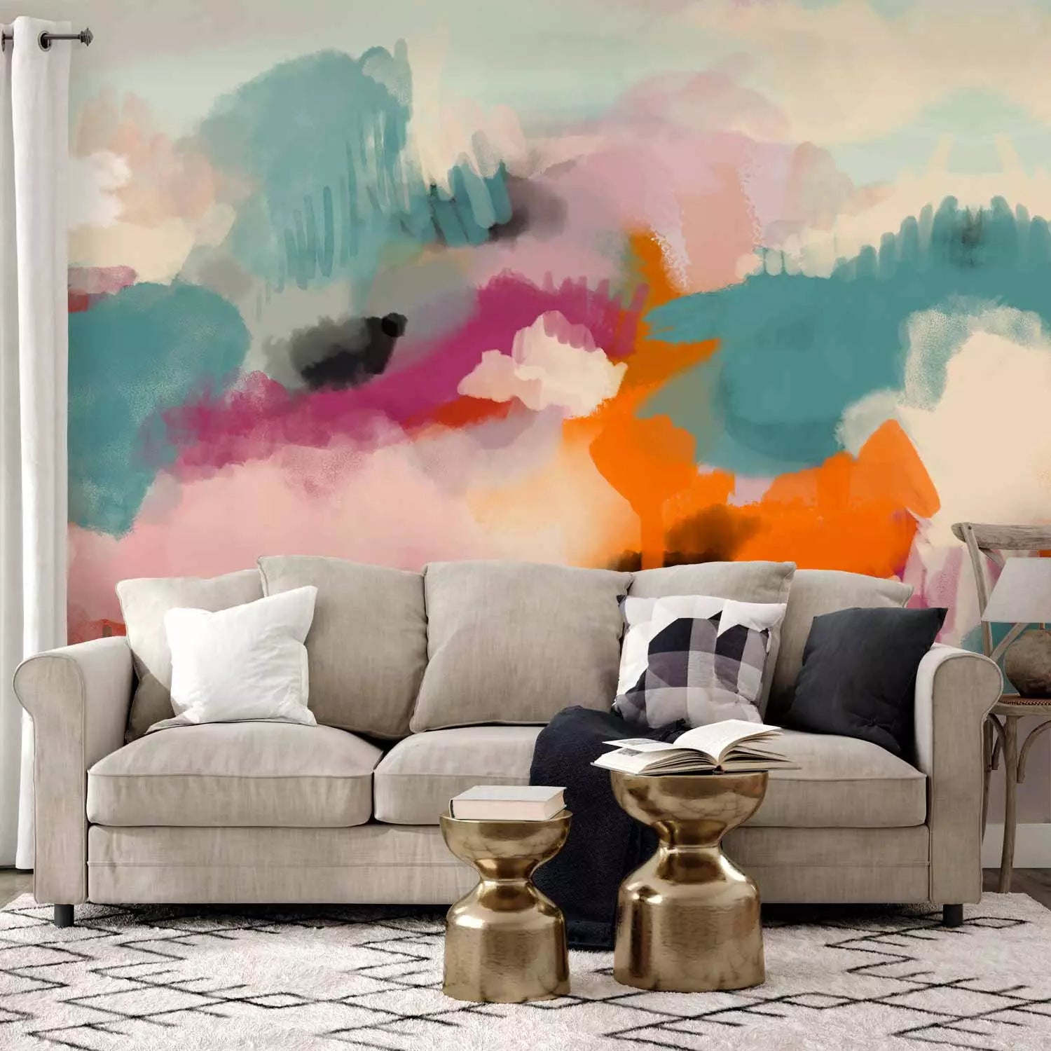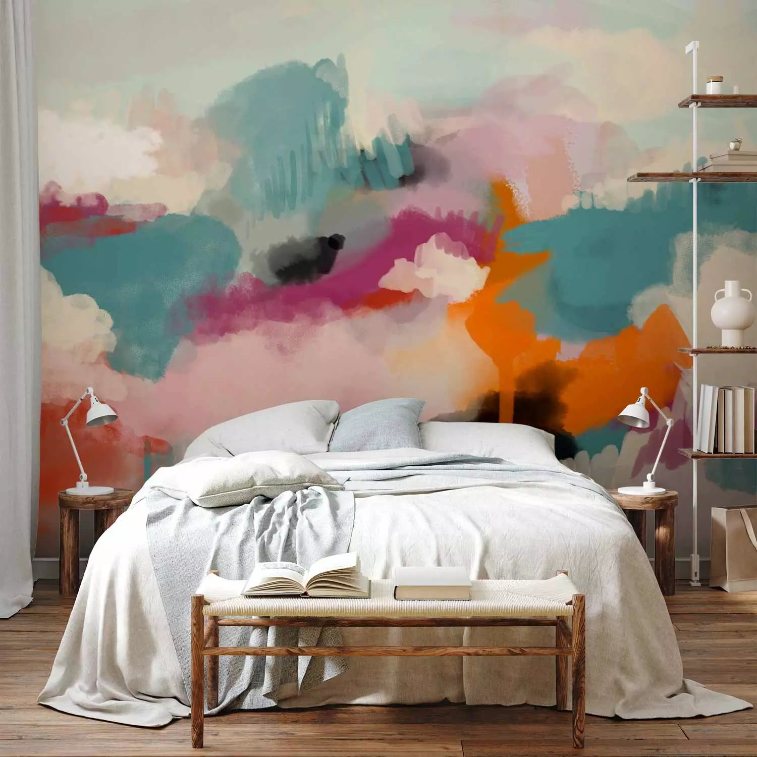 Fototapetes - Krāsaini plankumi mākoņu formā uz zila fona, 138339