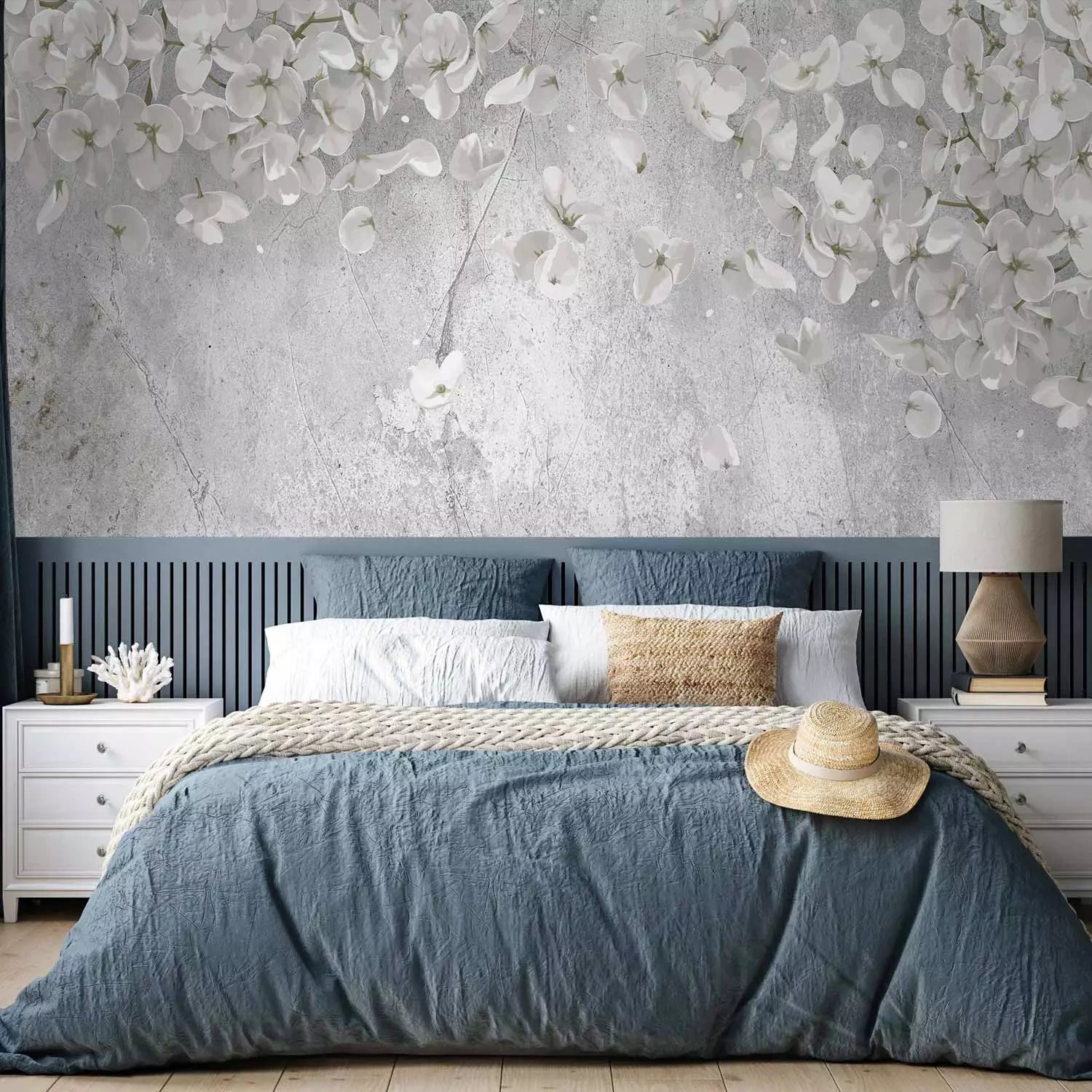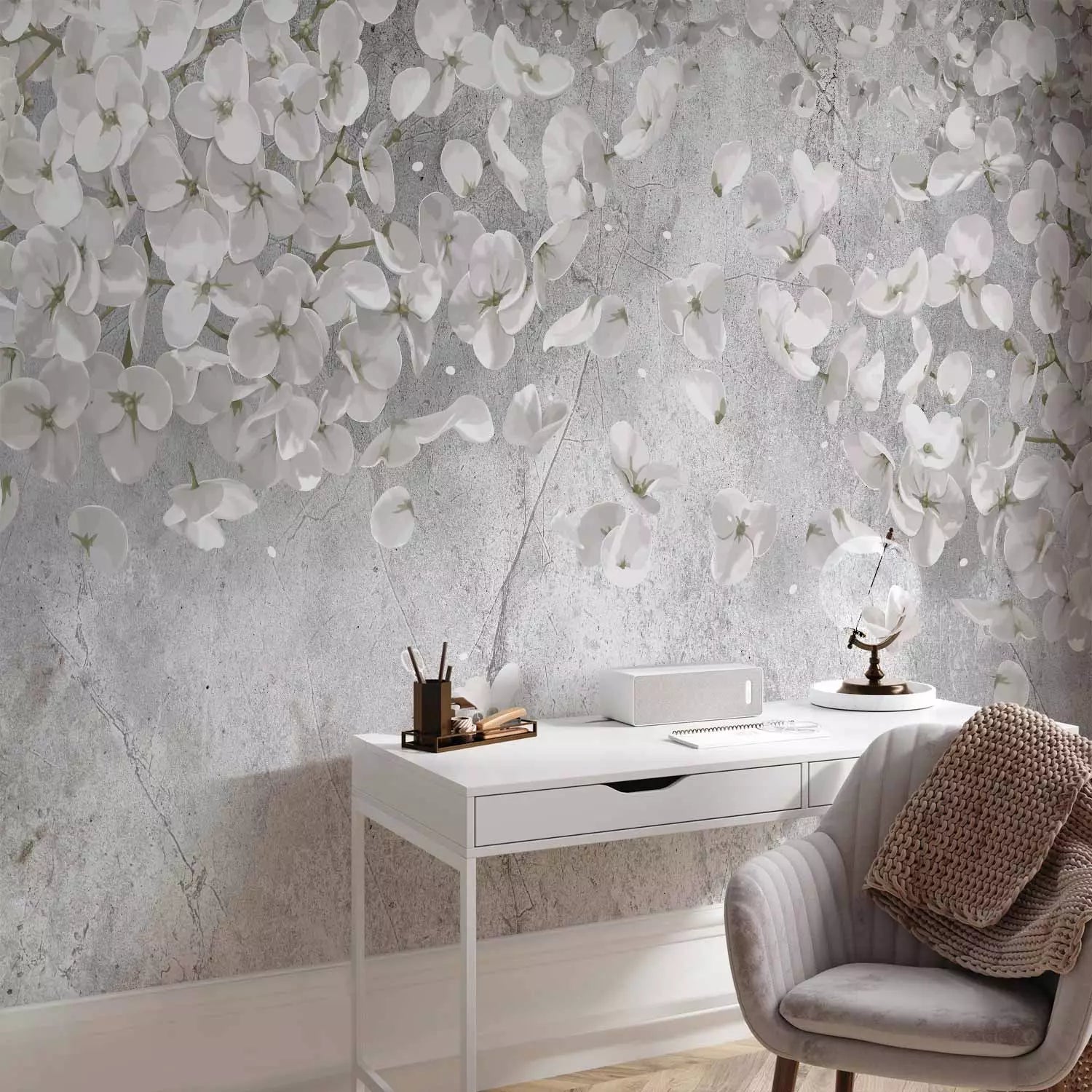 Fototapetes - Balti ziedi uz pelēka betona, 137926