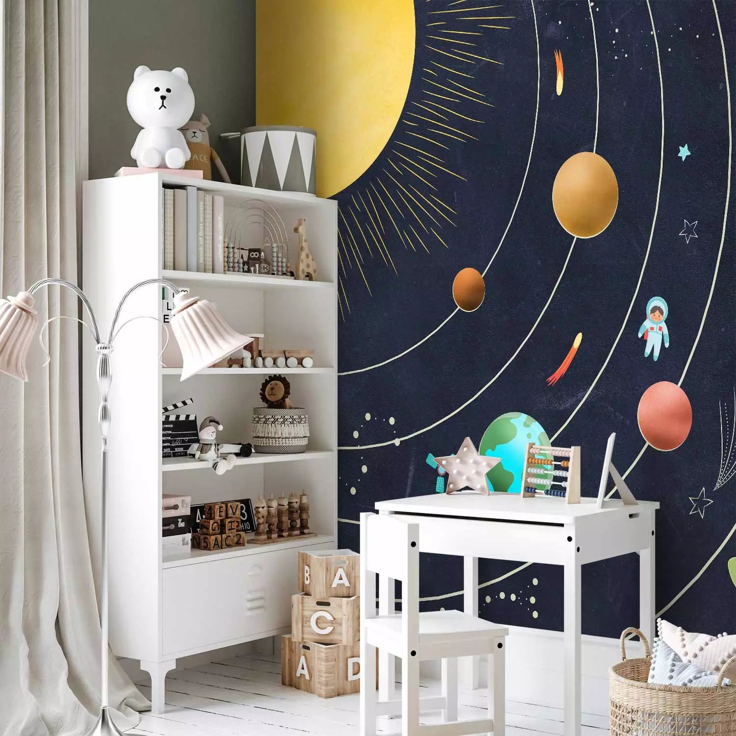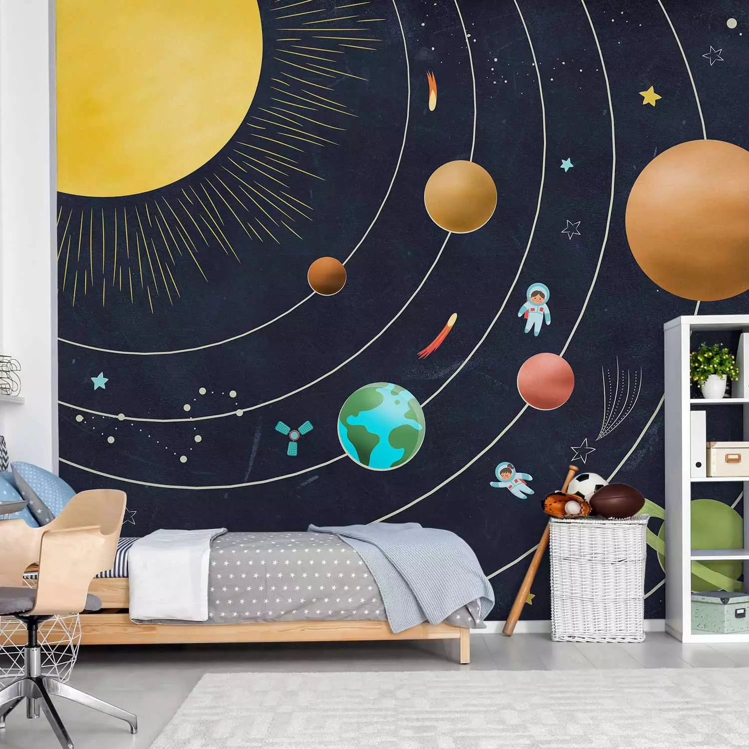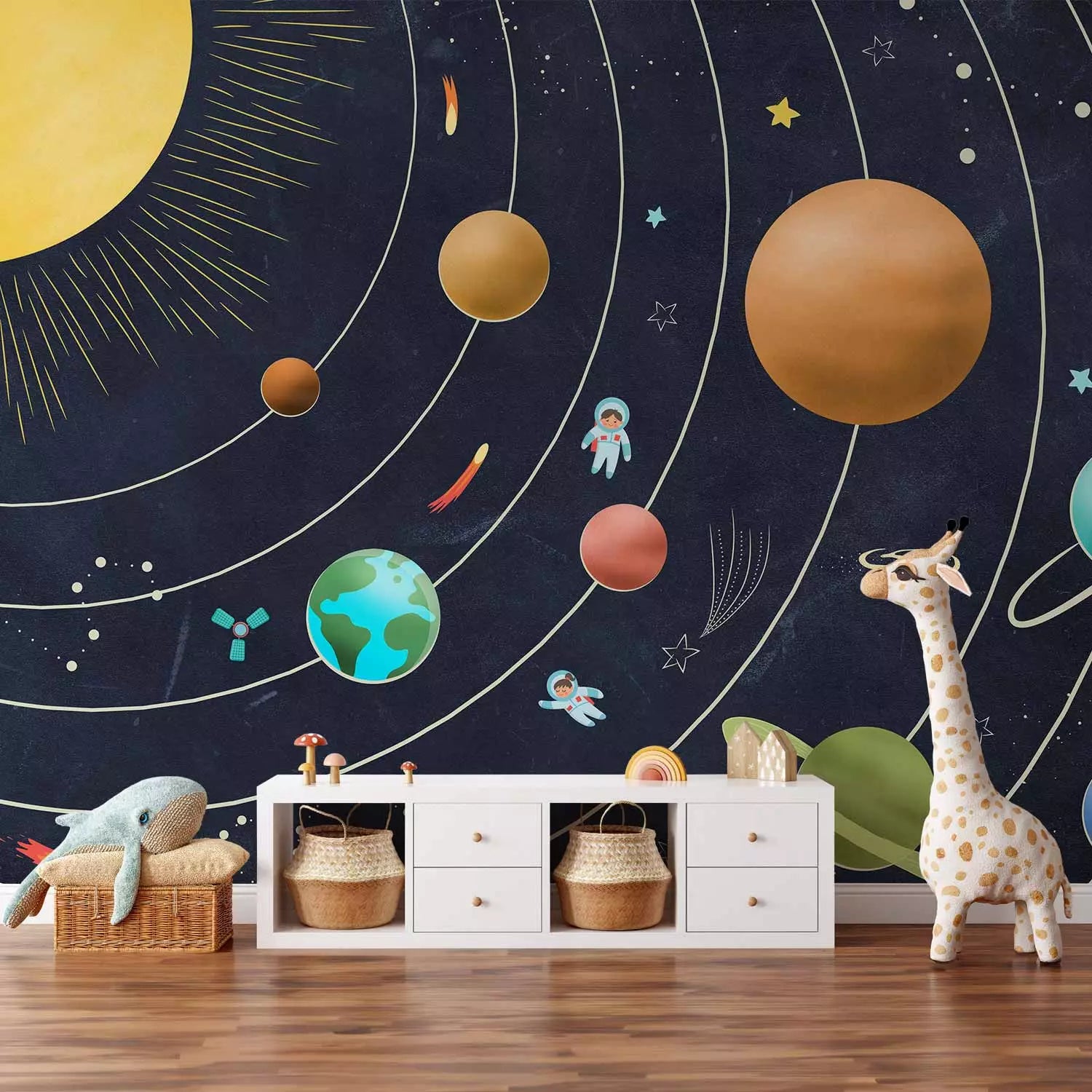 Fototapetes - Saules sistēma ar krāsainām planētām un zvaigznēm, 149212