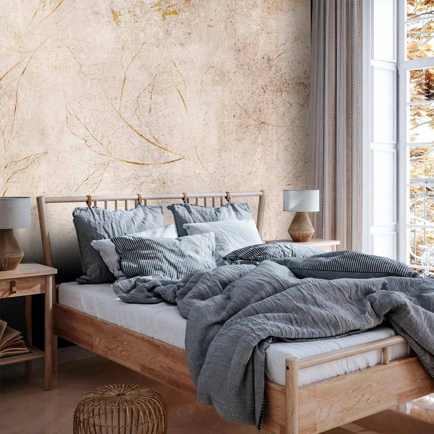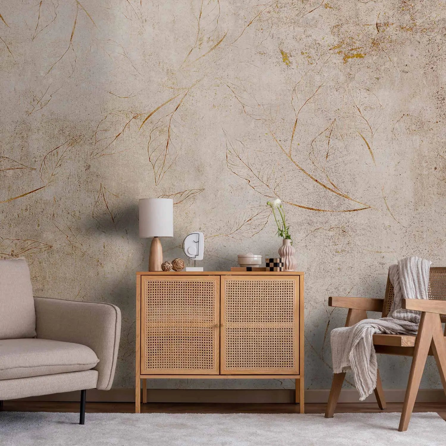 Fototapetes - Smalkas dabas skices – grafika gaišās krāsās ar lapu formām, 144630
