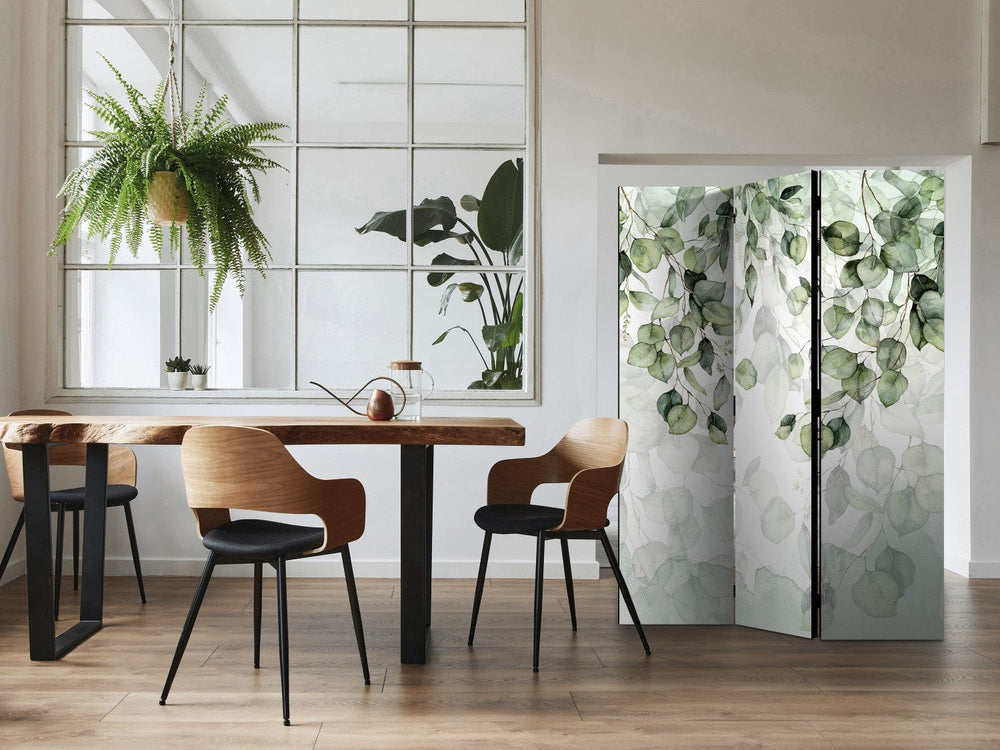 Aizslietnis istabai - Zaļas lapas uz balta fona, 135x172 cm ART