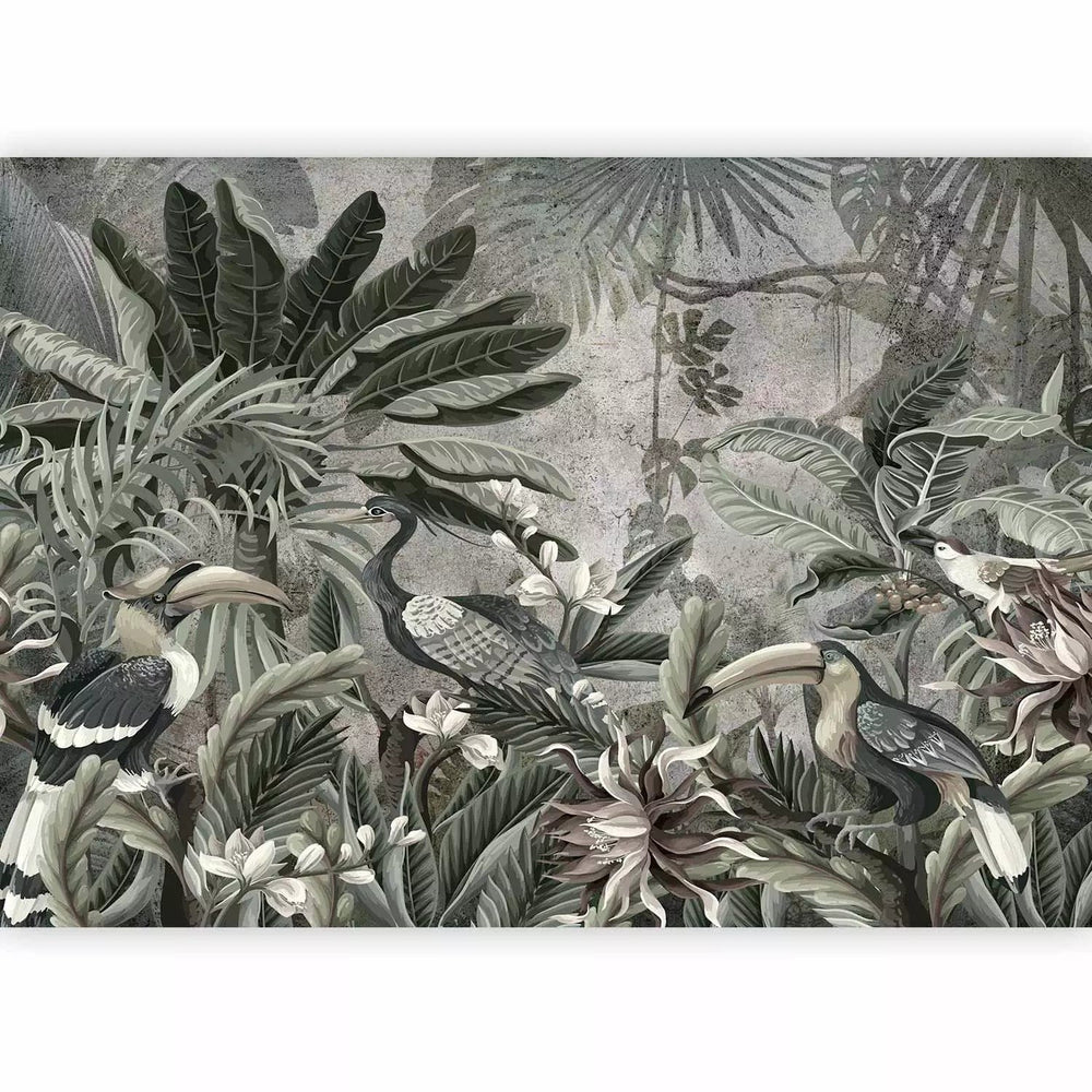 Fototapetes - Putni džungļos - tumši zaļos toņos - 138588