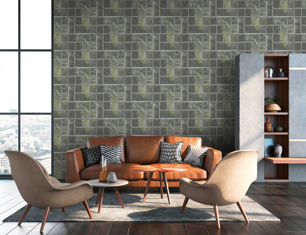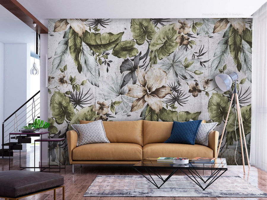 Fototapetes tropu stilā - Pilsētas džungļi, zaļa, pelēka, 143077 G-ART